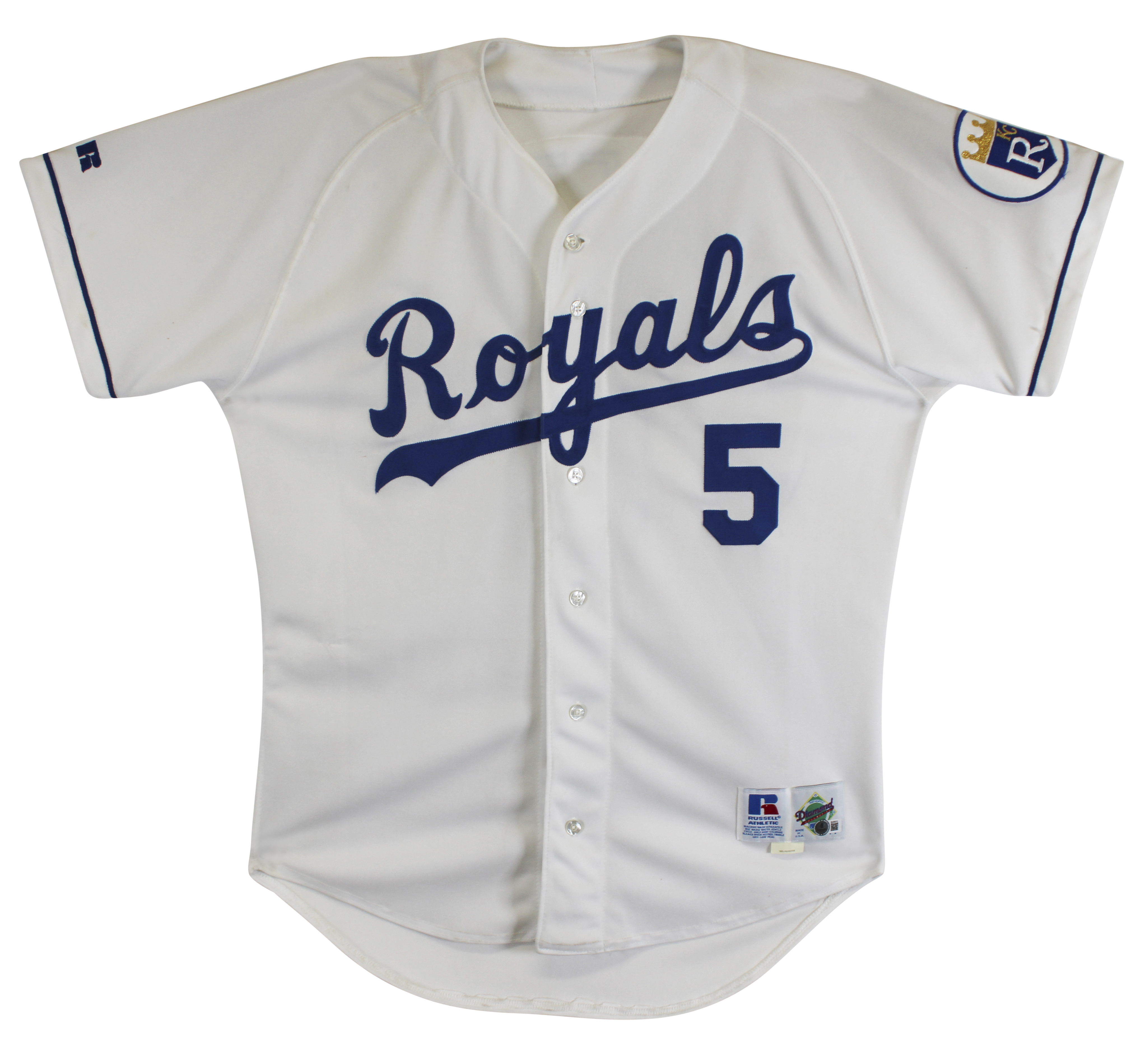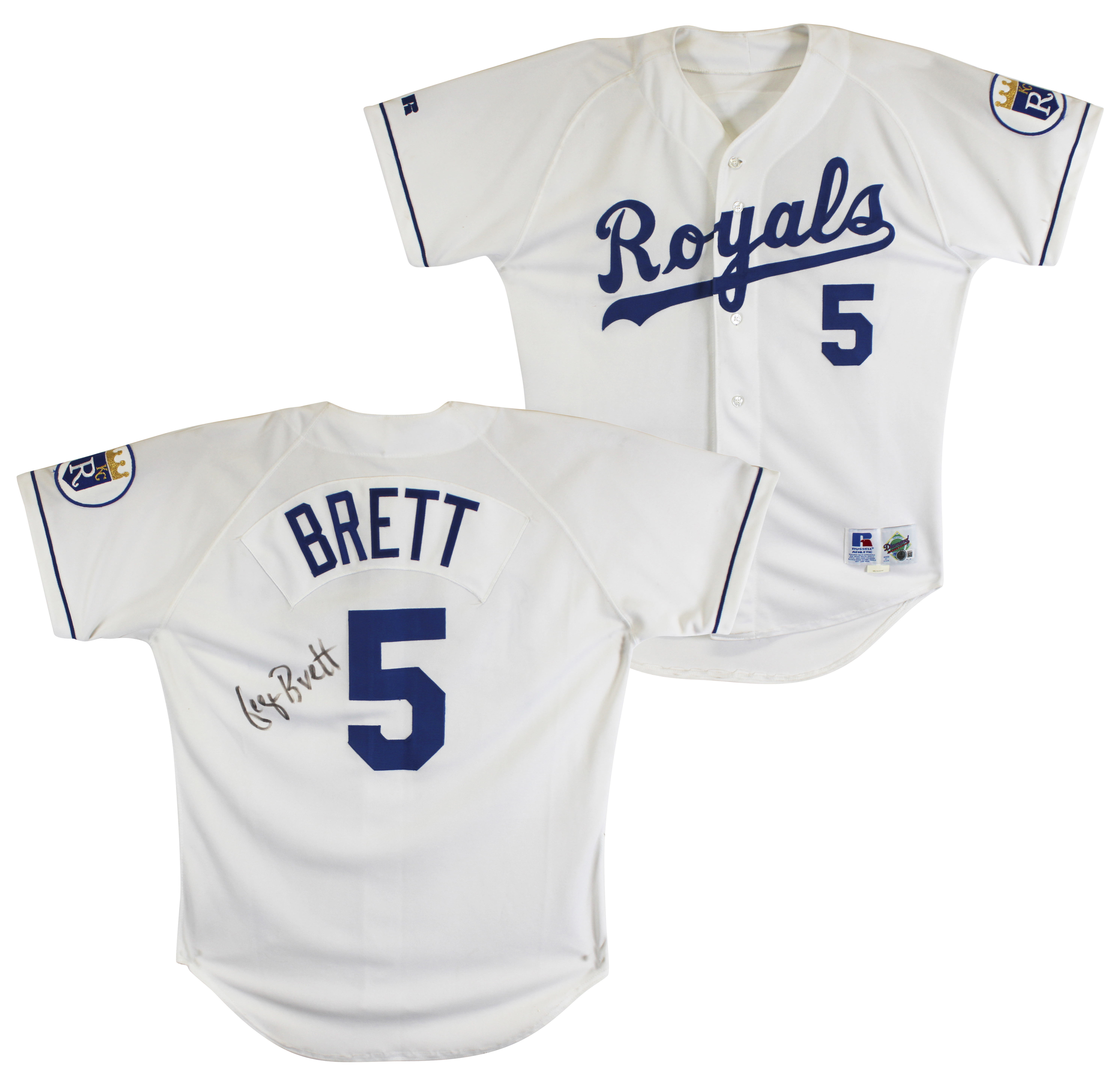 This Autographed White Russell Athletic Authentic Diamond Collection Jersey has been Personally Signed by George Brett of the Kansas City Royals. This item is 100% Authentic to include a hologram by Beckett Authentication Services. This item will come with an affixed Beckett Authentication Services (BAS) authentication sticker, which includes a scannable QR code to verify authenticity. Please note that Beckett no longer provides serial-numbered COA cards, and the attached BAS sticker will serve as the complete authentication for this item. The authenticity can be verified on Beckett Authentication Services website.