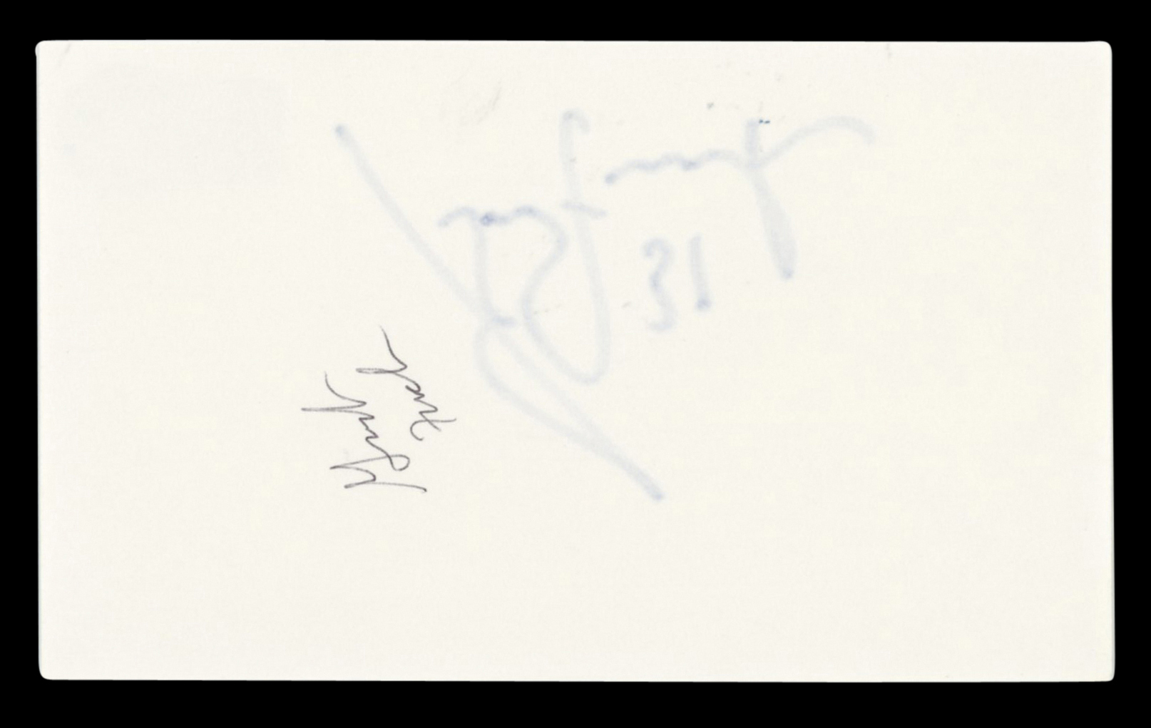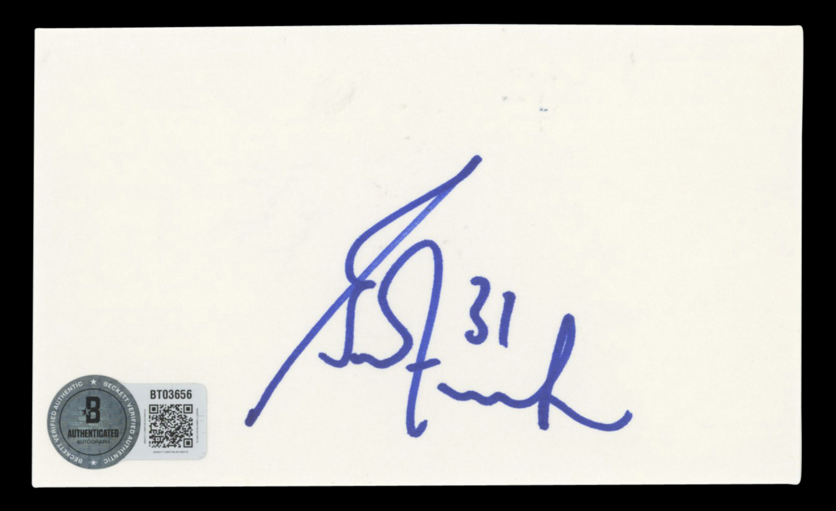This Autographed 3x5 Index Card with the inscription of "31" has been Personally Signed by Grant Fuhr of the Edmonton Oilers. This item is 100% Authentic to include a hologram by Beckett Authentication Services. This item will come with an affixed Beckett Authentication Services (BAS) authentication sticker, which includes a scannable QR code to verify authenticity. Please note that Beckett no longer provides serial-numbered COA cards, and the attached BAS sticker will serve as the complete authentication for this item. The authenticity can be verified on Beckett Authentication Services website.