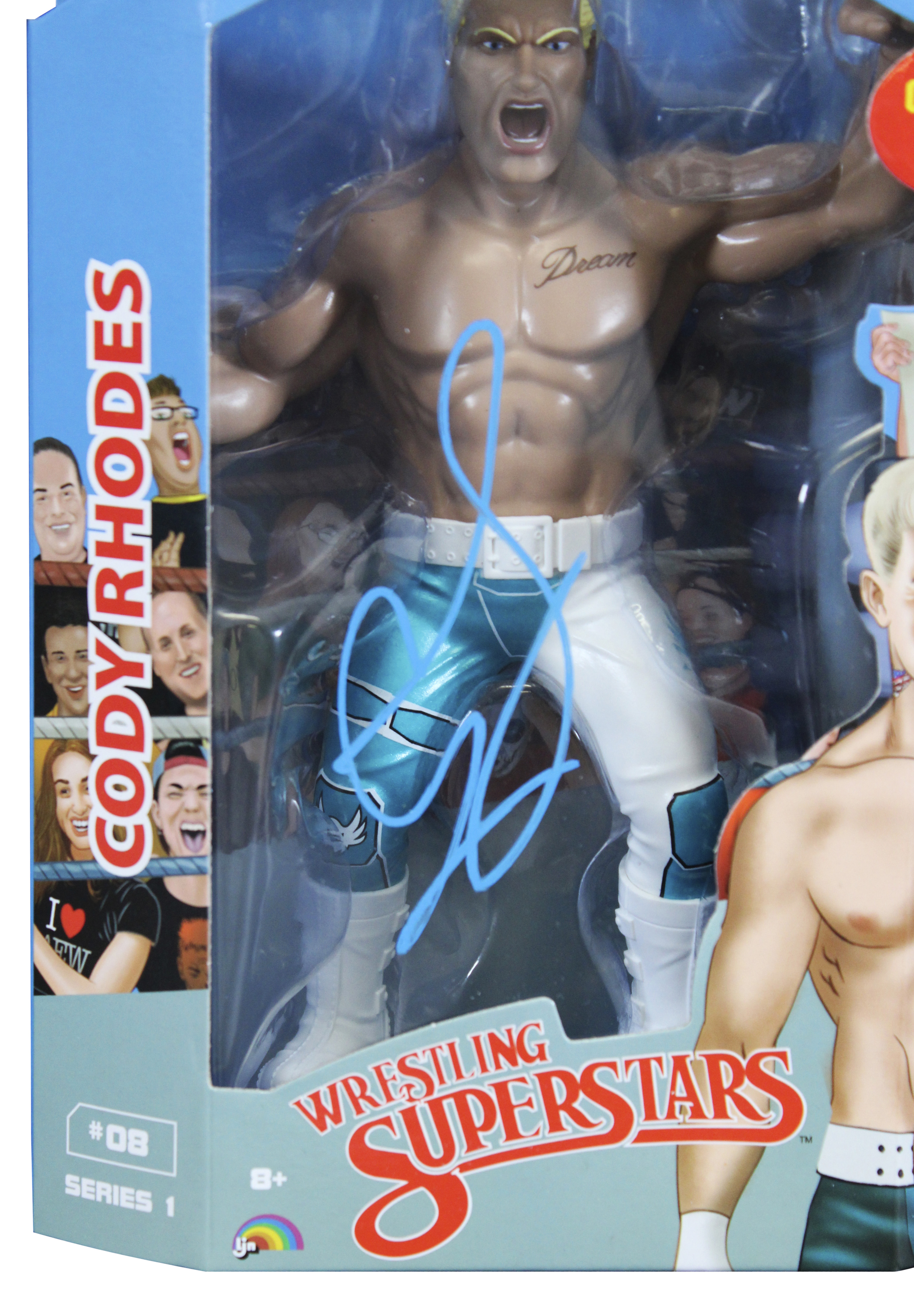 This Autographed All Elite Wrestling Series 1 #08 Wrestling Superstars Figure has been Personally Signed by Cody Rhodes of the World Wrestling Entertainment. This item is 100% Authentic to include a hologram by Beckett Authentication Services. This item will come with an affixed Beckett Authentication Services (BAS) authentication sticker, which includes a scannable QR code to verify authenticity. Please note that Beckett no longer provides serial-numbered COA cards, and the attached BAS sticker will serve as the complete authentication for this item. The authenticity can be verified on Beckett Authentication Services website.