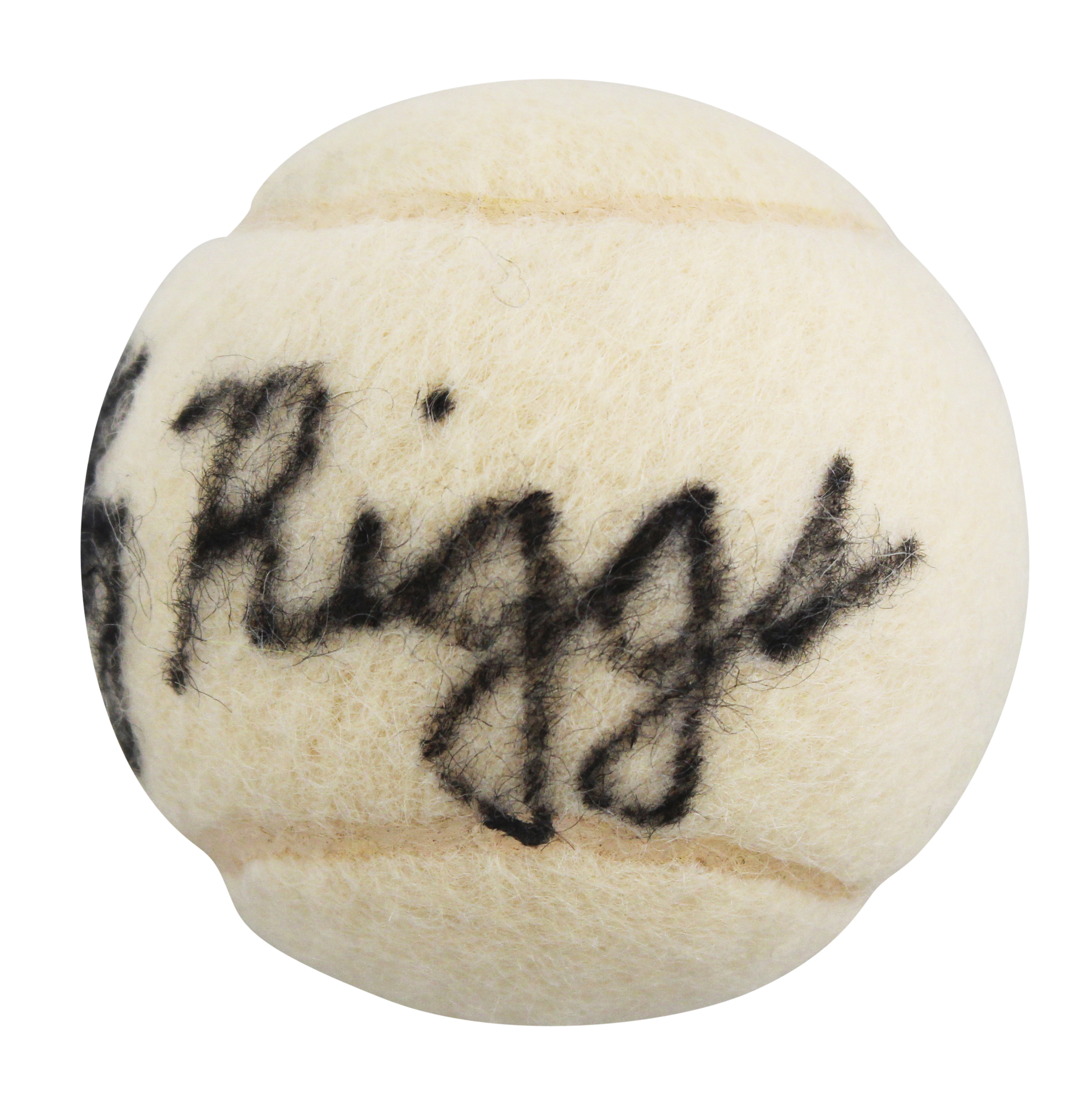 This Autographed Slazenger Tennis Ball has been Personally Signed by Bobby Riggs. This item is 100% Authentic to include a hologram by Beckett Authentication Services. This item will come with an affixed Beckett Authentication Services (BAS) authentication sticker, which includes a scannable QR code to verify authenticity. Please note that Beckett no longer provides serial-numbered COA cards, and the attached BAS sticker will serve as the complete authentication for this item. The authenticity can be verified on Beckett Authentication Services website.
