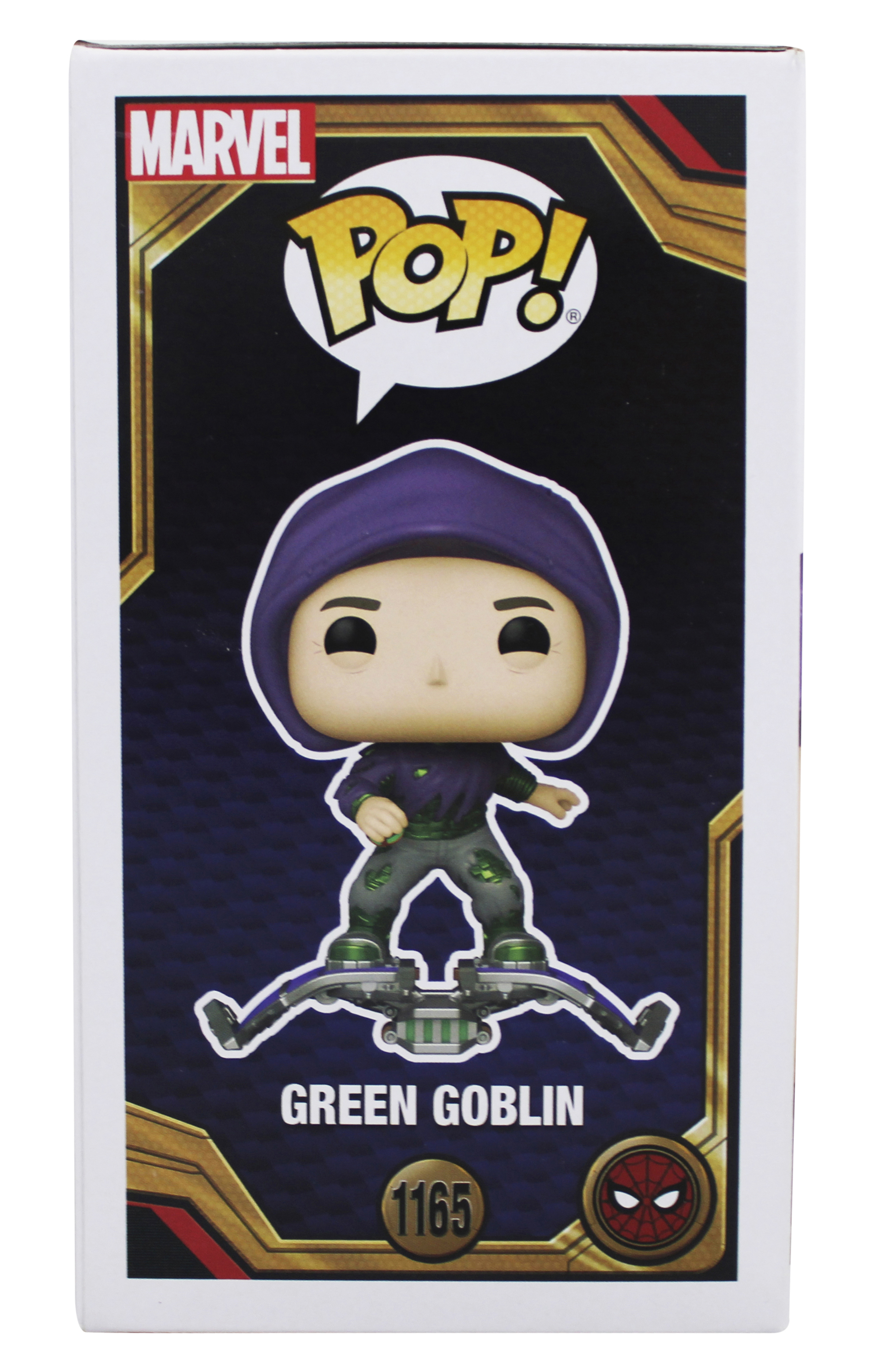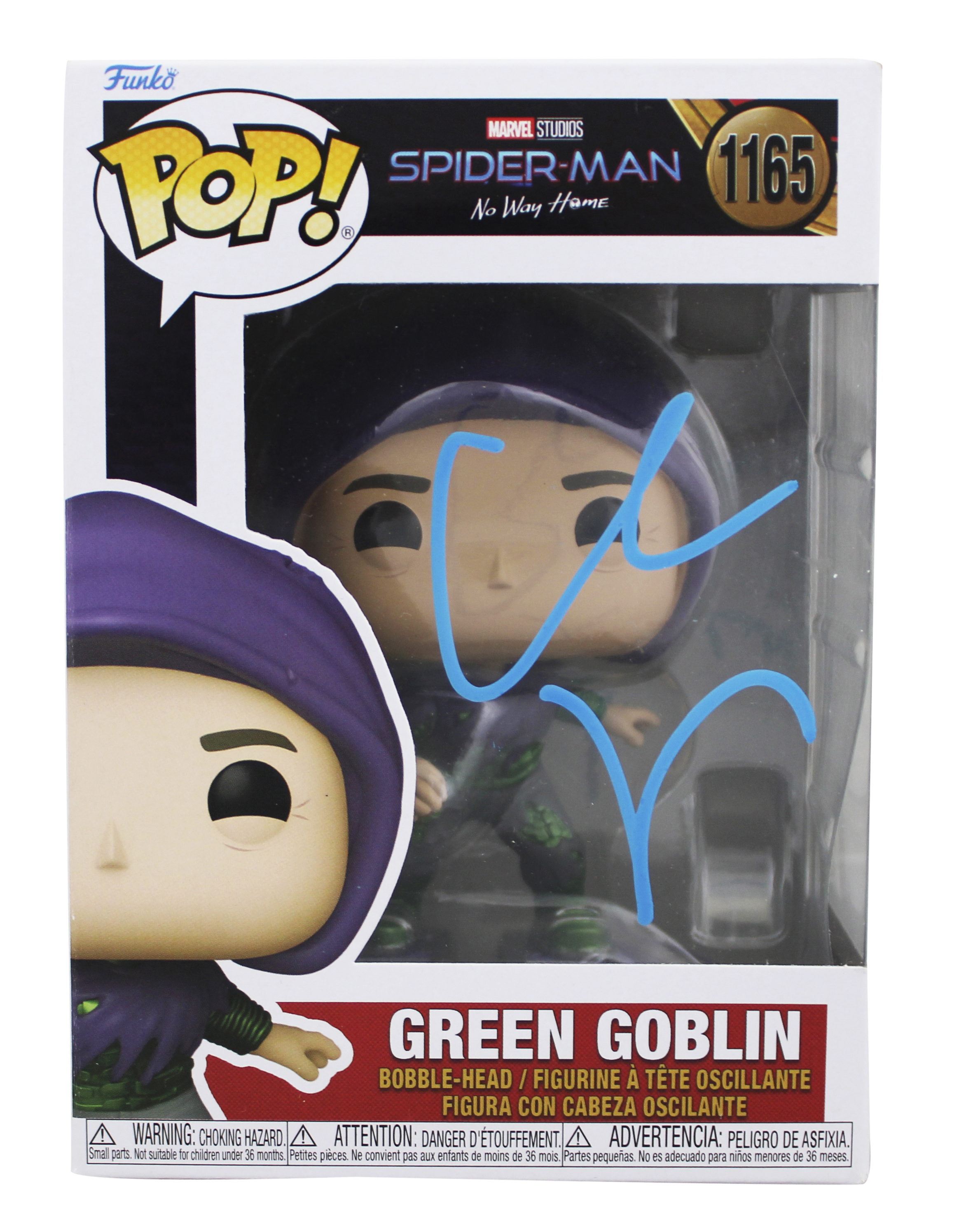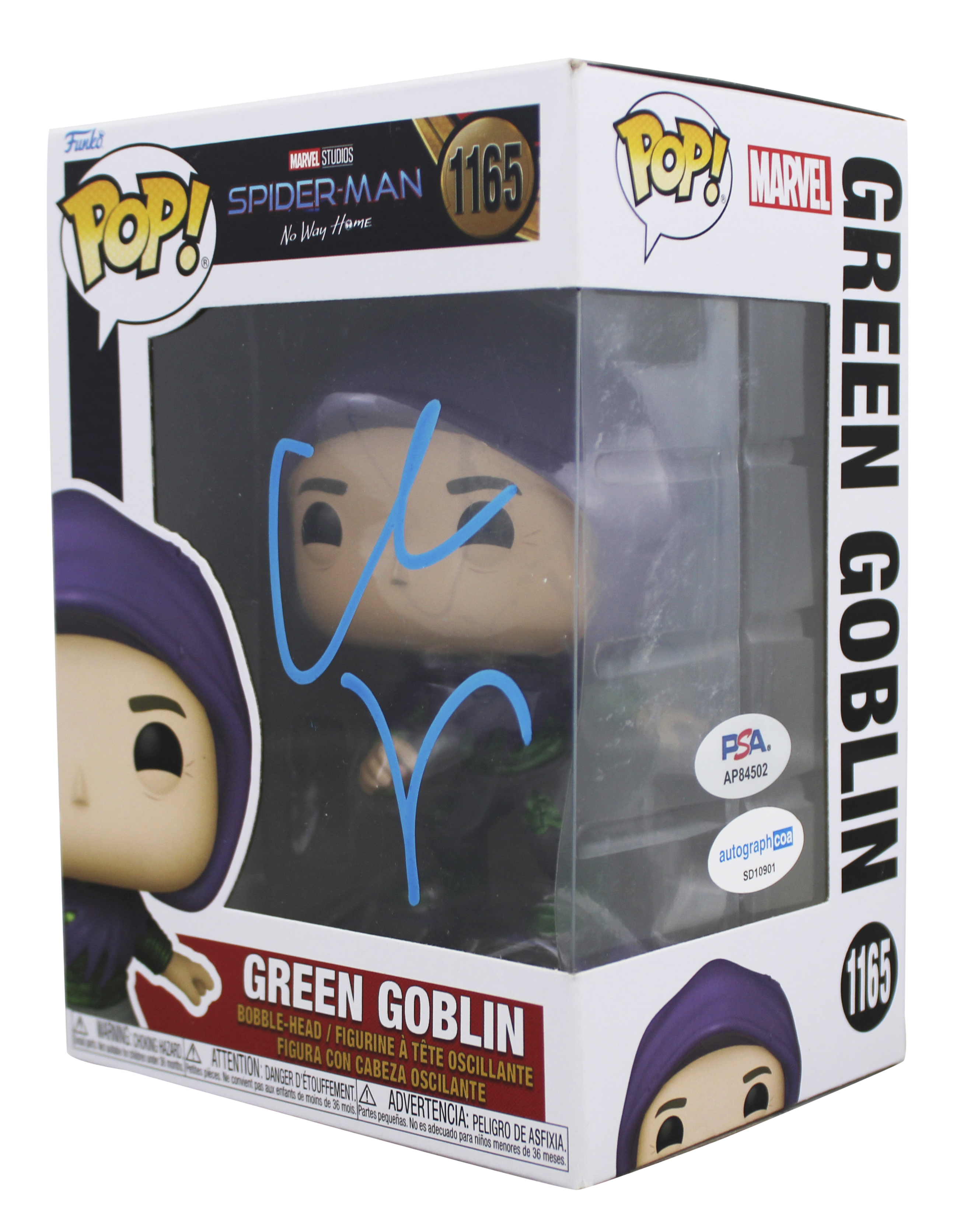 This Autographed Green Goblin #1165 Funko Pop Vinyl Figure has been Personally Signed by Willem Dafoe of Spider-Man: No Way Home. This item is 100% Authentic and comes with a PSA/DNA Certification numbered Hologram. Please note that PSA/DNA no longer provides serial-numbered COA cards, and the attached PSA/DNA sticker will serve as the complete authentication for this item. The authenticity can be verified on Professional Sports Authenticators website. This will be shipped in a Pop Protector, each will have some handling wear from shipment to the signing and back. These would not be considered mint.