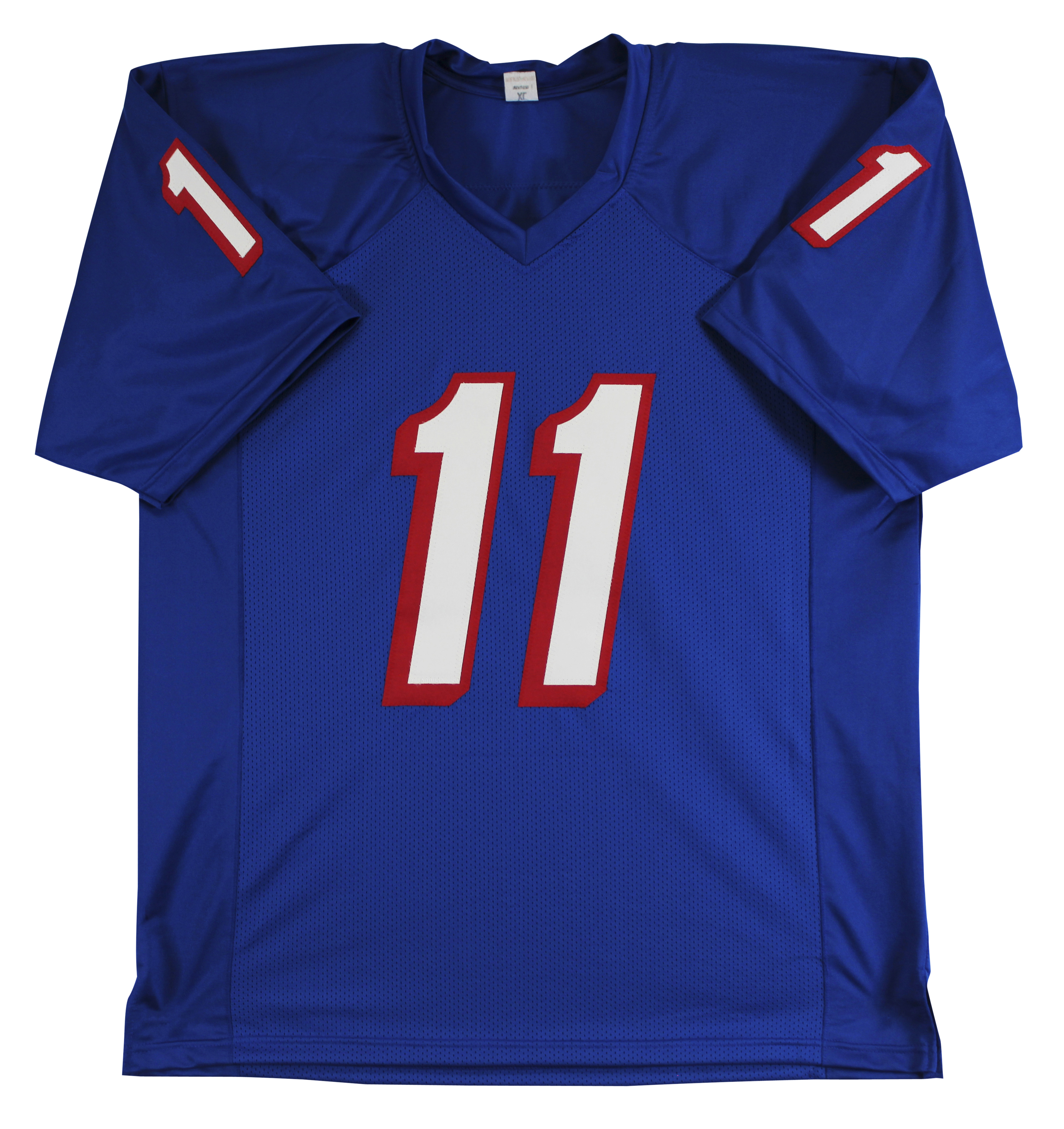 This Autographed Throwback Blue Pro Style Jersey has been Personally Signed by Drew Bledsoe of the New England Patriots. This item is 100% Authentic to include a hologram by Beckett Authentication Services. This item will come with an affixed Beckett Authentication Services (BAS) authentication sticker, which includes a scannable QR code to verify authenticity. Please note that Beckett no longer provides serial-numbered COA cards, and the attached BAS sticker will serve as the complete authentication for this item. This is a BAS Witnessed Protection Program item which means a Beckett Authentication Service representative was present when this item was being signed. We conducted an autograph signing with Drew Bledsoe where multiples of the same item were signed. While the photographs are representative of this item, the size, placement and strength of the signature may vary. Each item is hand signed, therefore, each autograph is unique. This item can be verified through BAS Witnessed. This is a X-Large sized, non-branded, custom-stitched Jersey.
