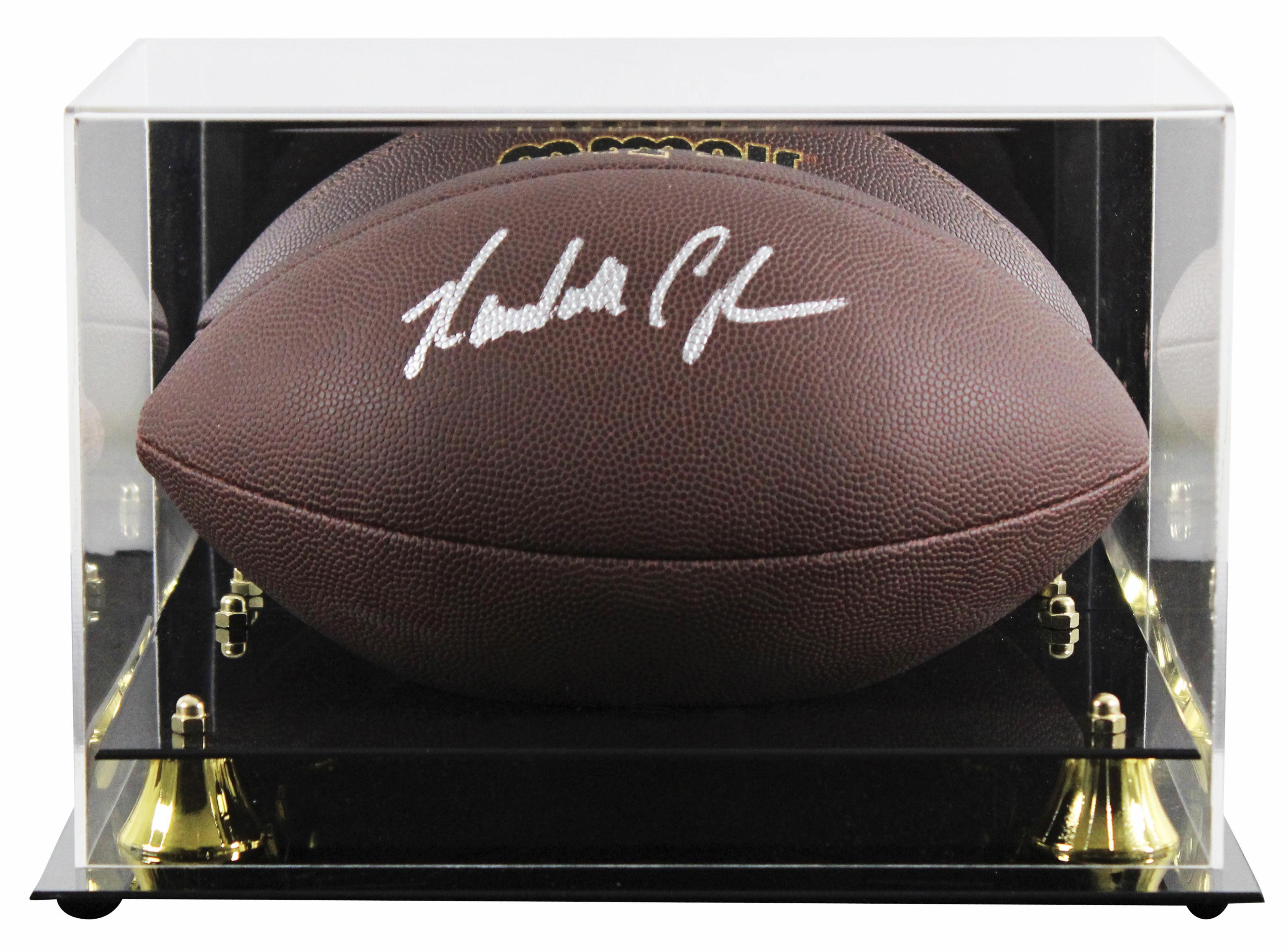 This Autographed Wilson Super Grip NFL Football W/ Uv Mirrored Back Acrylic Display Case has been Personally Signed by Randall Cunningham of the Philadelphia Eagles. This item is 100% Authentic to include a hologram by Beckett Authentication Services. This item will come with an affixed Beckett Authentication Services (BAS) authentication sticker, which includes a scannable QR code to verify authenticity. Please note that Beckett no longer provides serial-numbered COA cards, and the attached BAS sticker will serve as the complete authentication for this item. This is a BAS Witnessed Protection Program item which means a Beckett Authentication Service representative was present when this item was being signed. We conducted an autograph signing with Randall Cunningham where multiples of the same item were signed. While the photographs are representative of this item, the size, placement and strength of the signature may vary. Each item is hand signed, therefore, each autograph is unique. This item can be verified through BAS Witnessed.