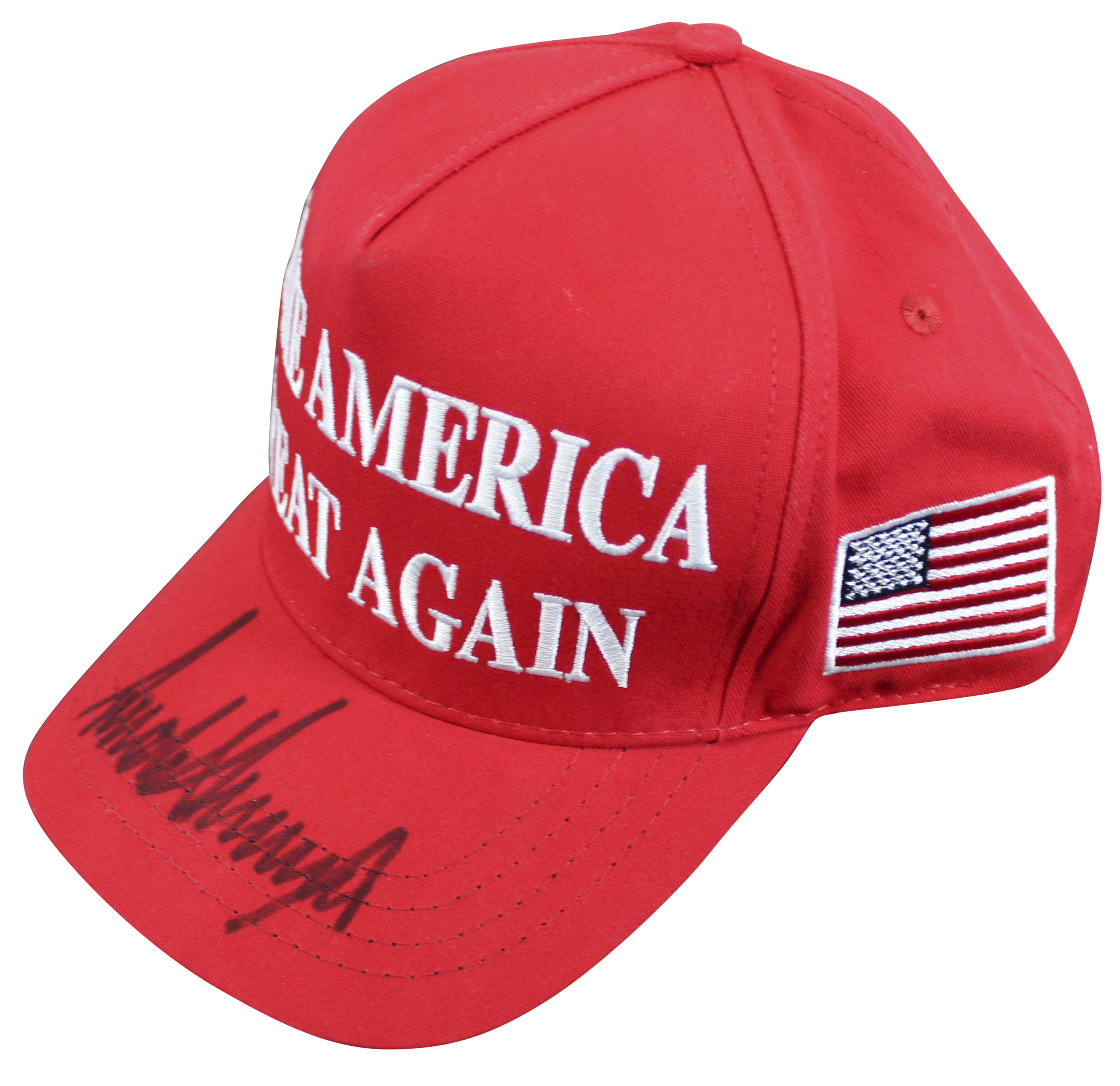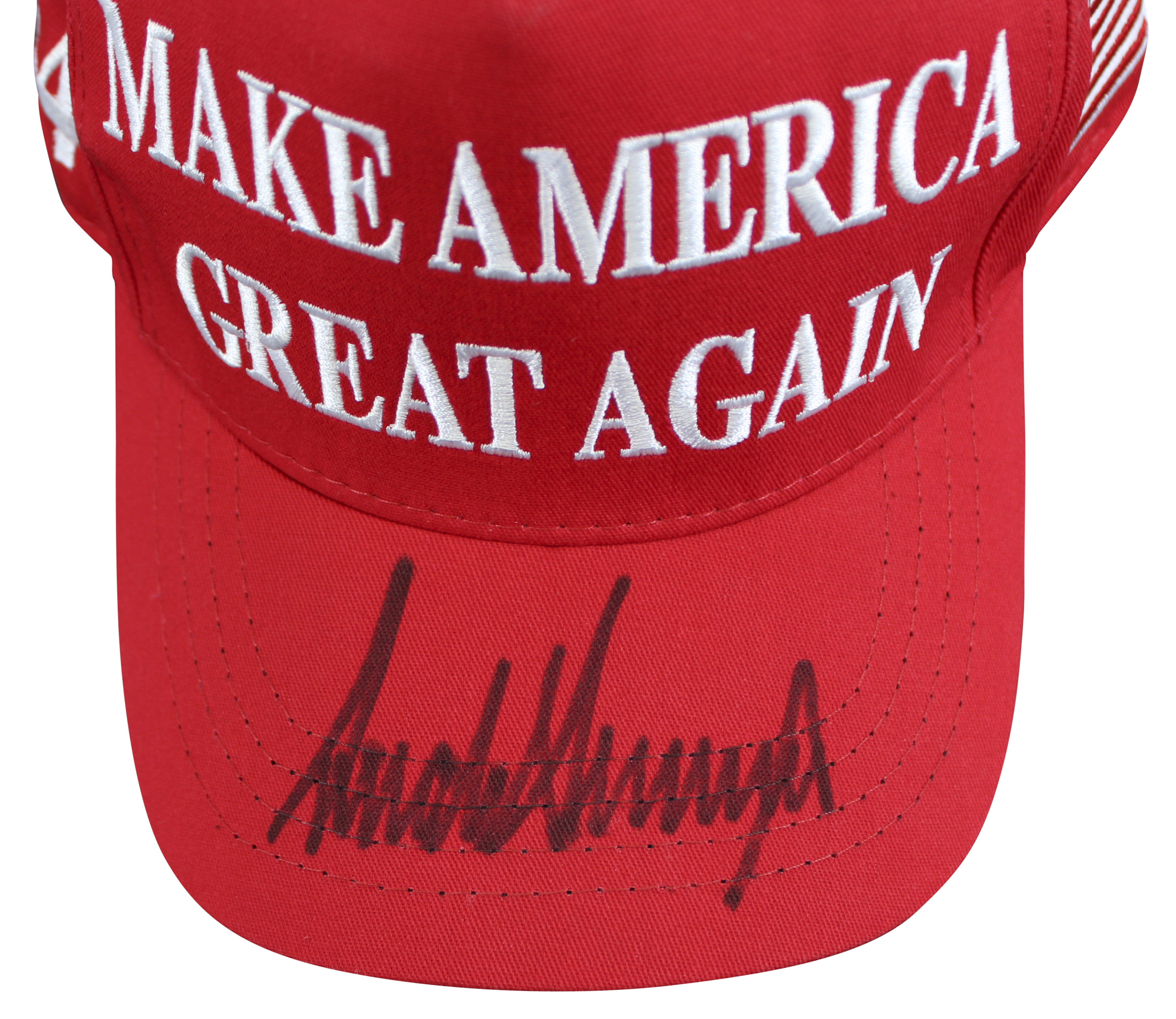 This Autographed Make America Great Again Hat has been Personally Signed by Donald J. Trump. This item is 100% Authentic and comes with a PSA/DNA Certification Card and a matching numbered Hologram. The authenticity can be verified on Professional Sports Authenticator website.