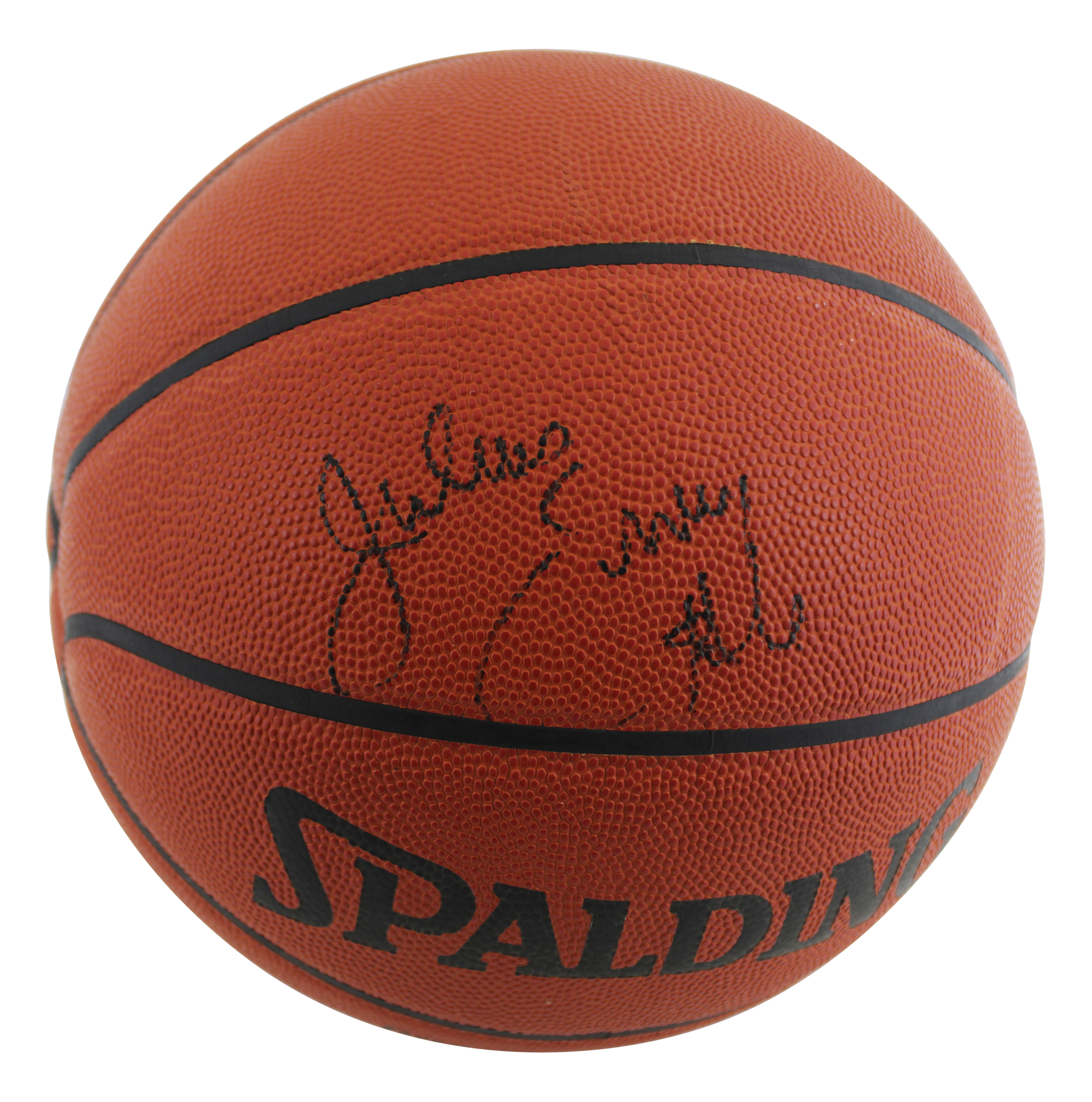 This Autographed Spalding Official NBA Game Basketball has been Personally Signed by Julius Erving of the Philadelphia 76ers. This item is 100% Authentic to include a hologram by Beckett Authentication Services. This item will come with an affixed Beckett Authentication Services (BAS) authentication sticker, which includes a scannable QR code to verify authenticity. Please note that Beckett no longer provides serial-numbered COA cards, and the attached BAS sticker will serve as the complete authentication for this item. The authenticity can be verified on Beckett Authentication Services website.