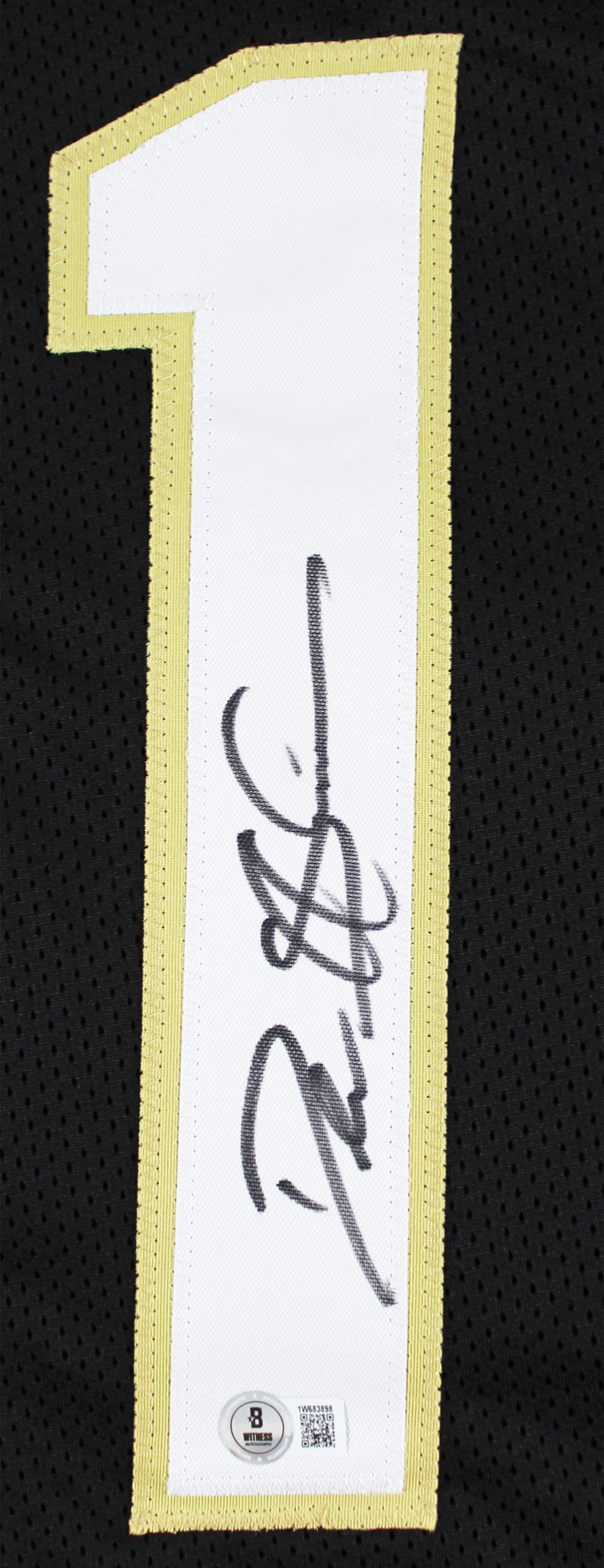 This Autographed Coach Prime Black Pro Style Jersey has been Personally Signed by Deion Sanders of the Colorado Buffaloes. This item is 100% Authentic to include a hologram by Beckett Authentication Services. This item will come with the new Beckett Authentication hologram that has a scannable QR code rather than the traditional COA. If you would like to have a COA, you are welcome to reach out to Beckett for a printed certification once you receive your item. This is a BAS Witnessed Protection Program item which means a Beckett Authentication Service representative was present when this item was being signed. We conducted an autograph signing with Deion Sanders where multiples of the same item were signed. While the photographs are representative of this item, the size, placement and strength of the signature may vary. Each item is hand signed, therefore, each autograph is unique. This item can be verified through BAS Witnessed. This is a X-Large sized, non-branded, custom-stitched Jersey.
