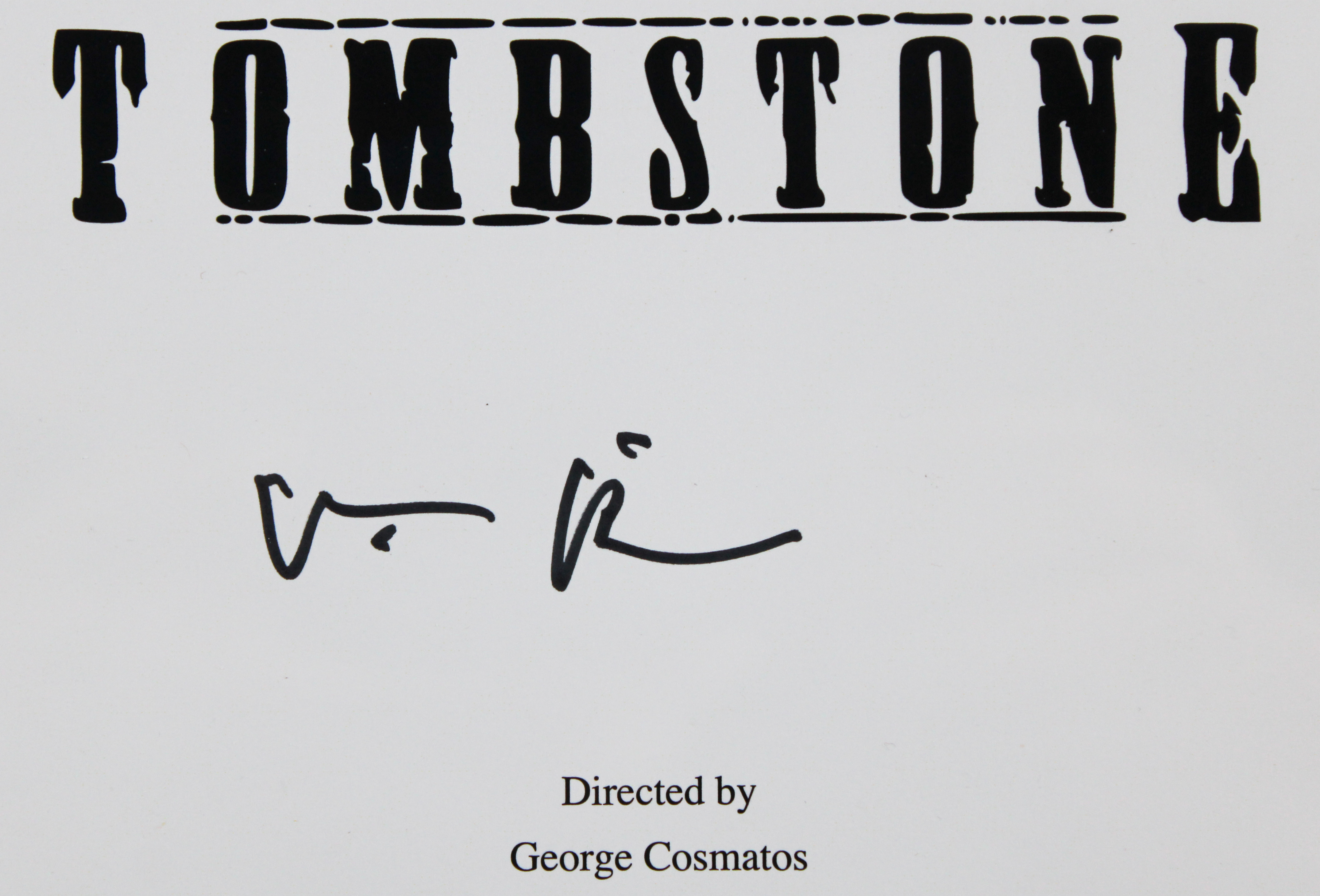 This Autographed Replica Movie Script has been Personally Signed by Val Kilmer of Tombstone. This item is 100% Authentic to include a Certificate of Authenticity (COA) / hologram by JSA.The authenticity can be verified on JSA website. This script will not come with its matching JSA card, however, its authenticity can still be searched and verified in JSA's database.