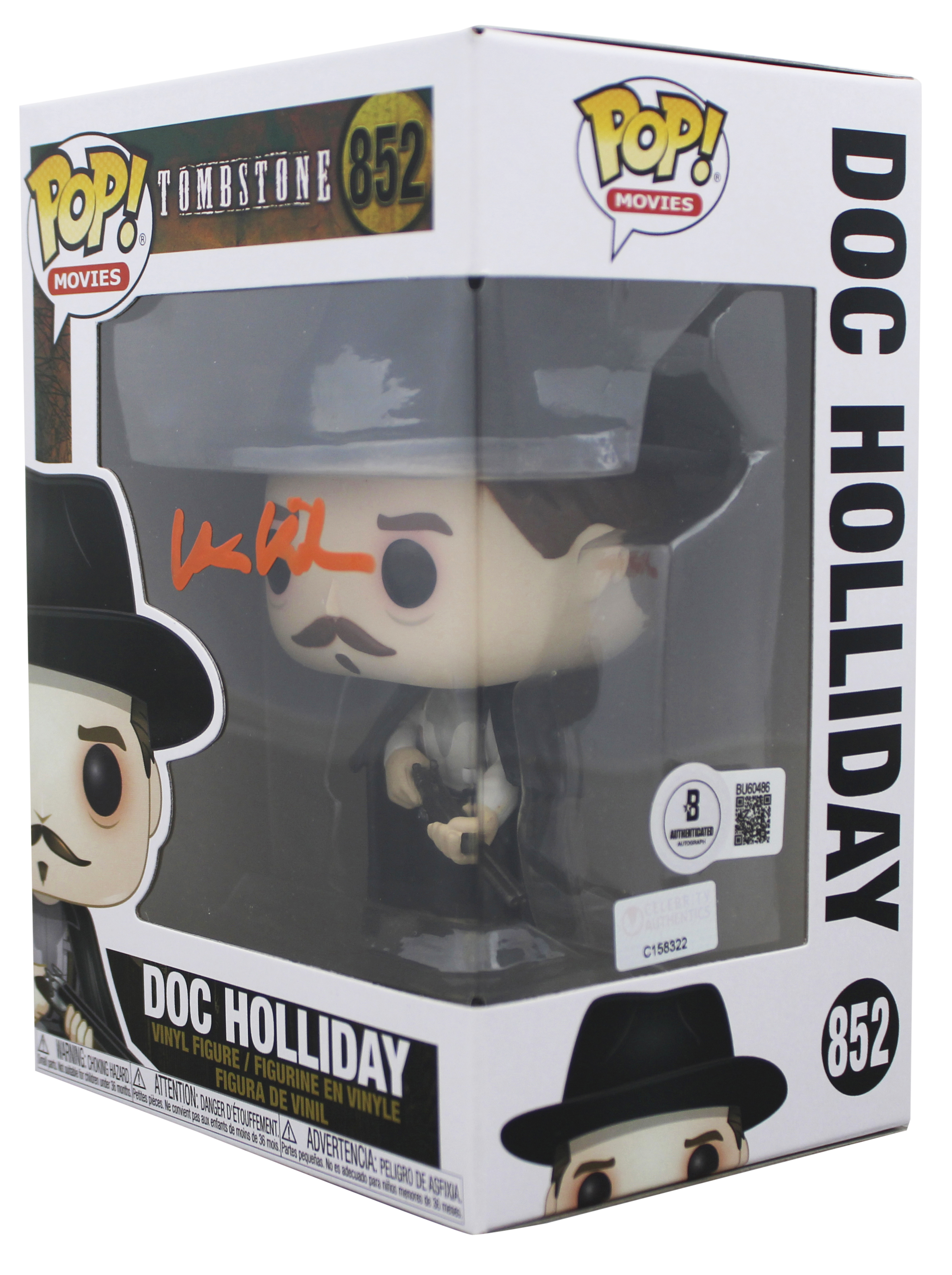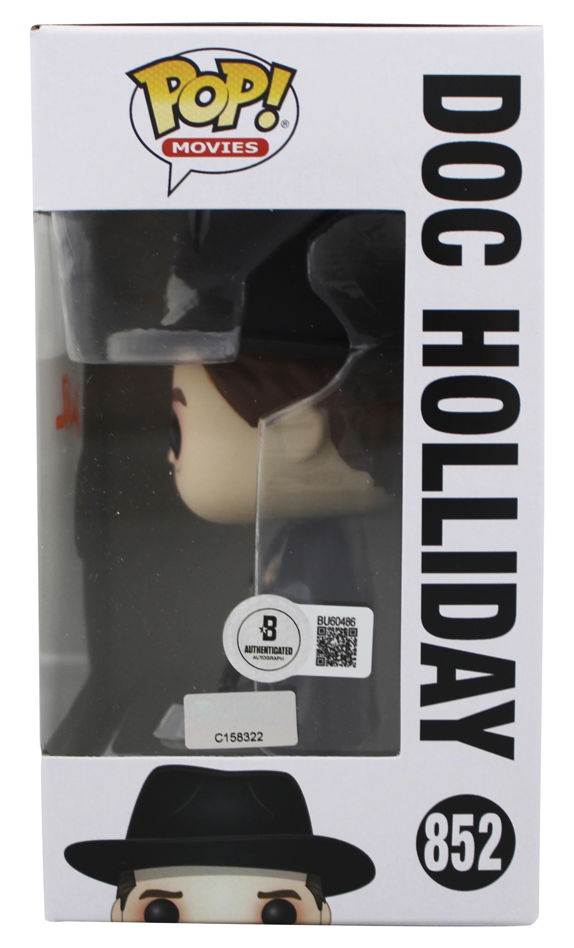 This Autographed Doc Holliday #852 Funko Pop Vinyl Figure has been Personally Signed by Val Kilmer of Tombstone. This item is 100% Authentic to include a hologram by Beckett Authentication Services. This item will come with an affixed Beckett Authentication Services (BAS) authentication sticker, which includes a scannable QR code to verify authenticity. Please note that Beckett no longer provides serial-numbered COA cards, and the attached BAS sticker will serve as the complete authentication for this item. The authenticity can be verified on Beckett Authentication Services website. This item will ship in a Pop! Protector. This Funko is in good condition, but there may be some handling or wear from signing and transportation. Please refer to the photos for condition of the item prior to purchase.