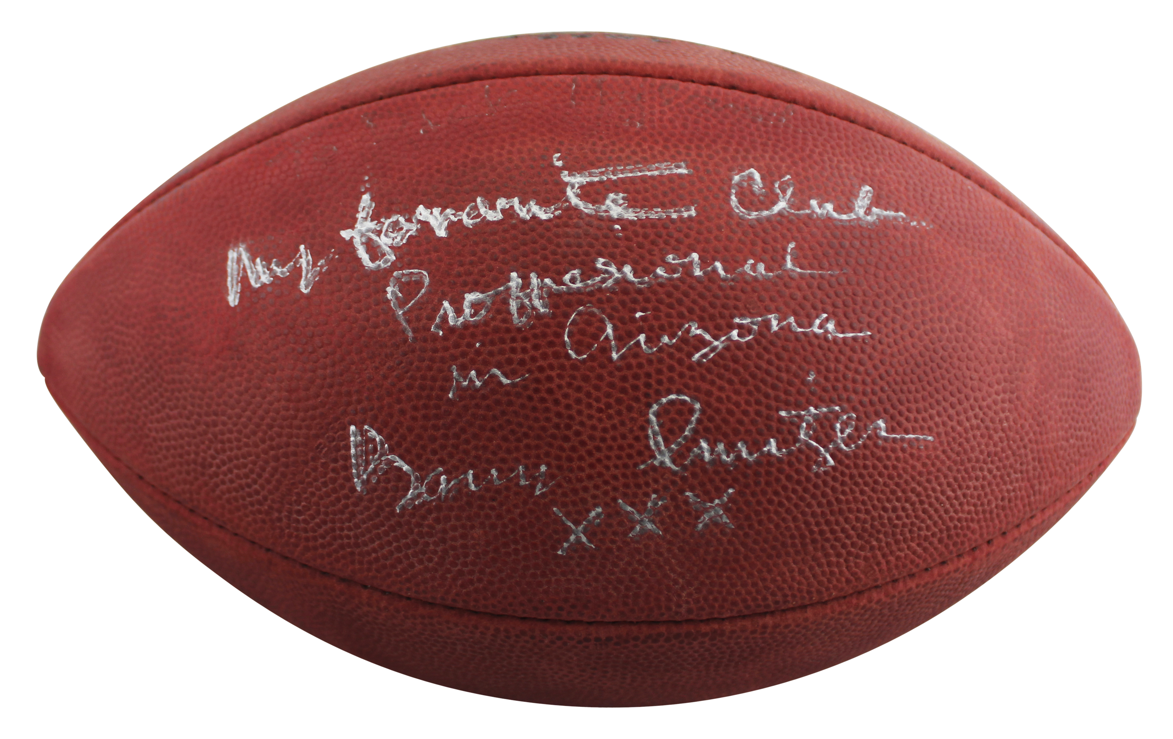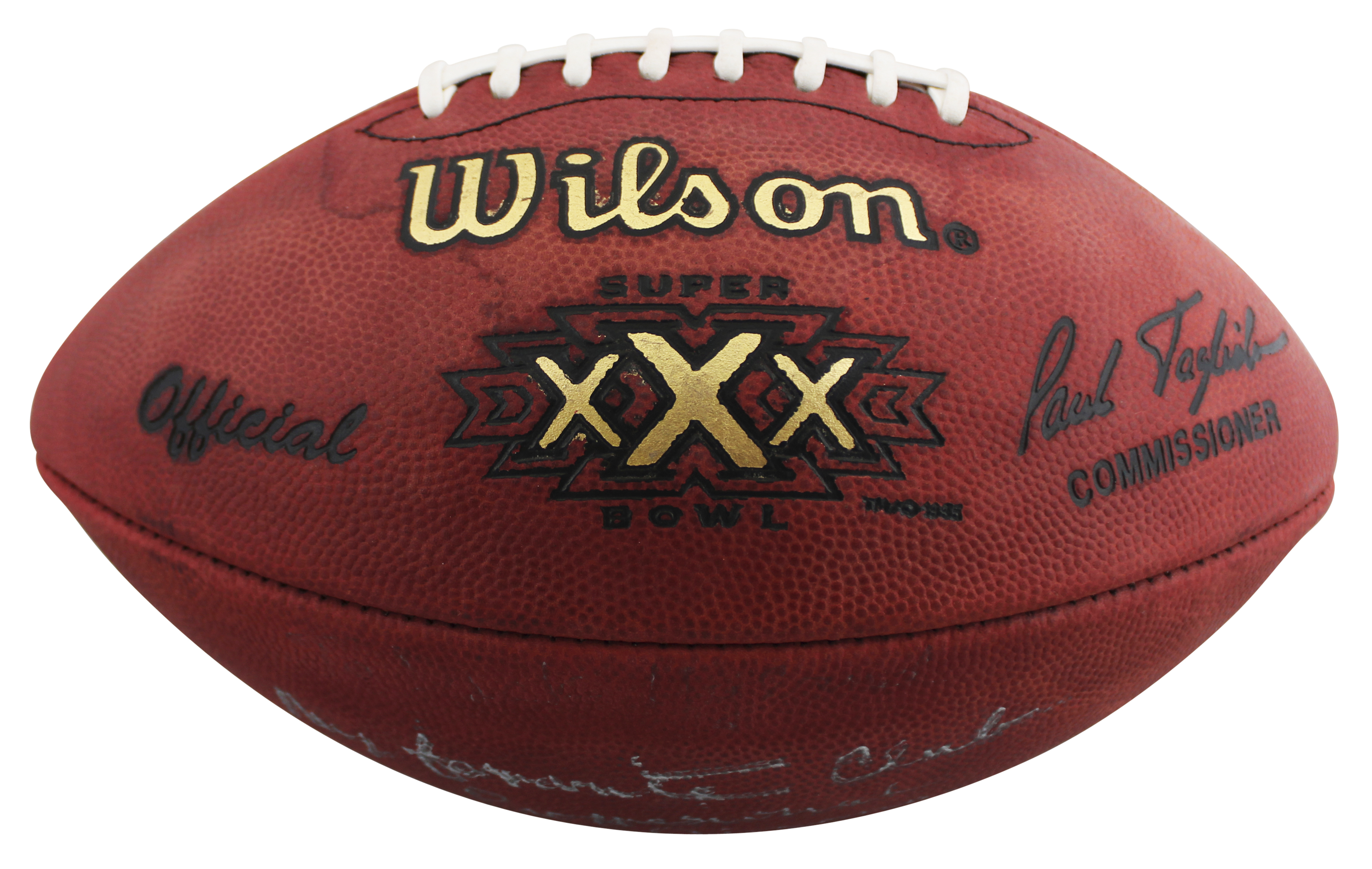 This Autographed Wilson Official Super Bowl XXX Nfl Football with the inscription of "My Favorite Club Professional in Arizona" has been Personally Signed by Barry Switzer of the Dallas Cowboys. This item is 100% Authentic to include a hologram by Beckett Authentication Services. This item will come with an affixed Beckett Authentication Services (BAS) authentication sticker, which includes a scannable QR code to verify authenticity. Please note that Beckett no longer provides serial-numbered COA cards, and the attached BAS sticker will serve as the complete authentication for this item. The authenticity can be verified on Beckett Authentication Services website.