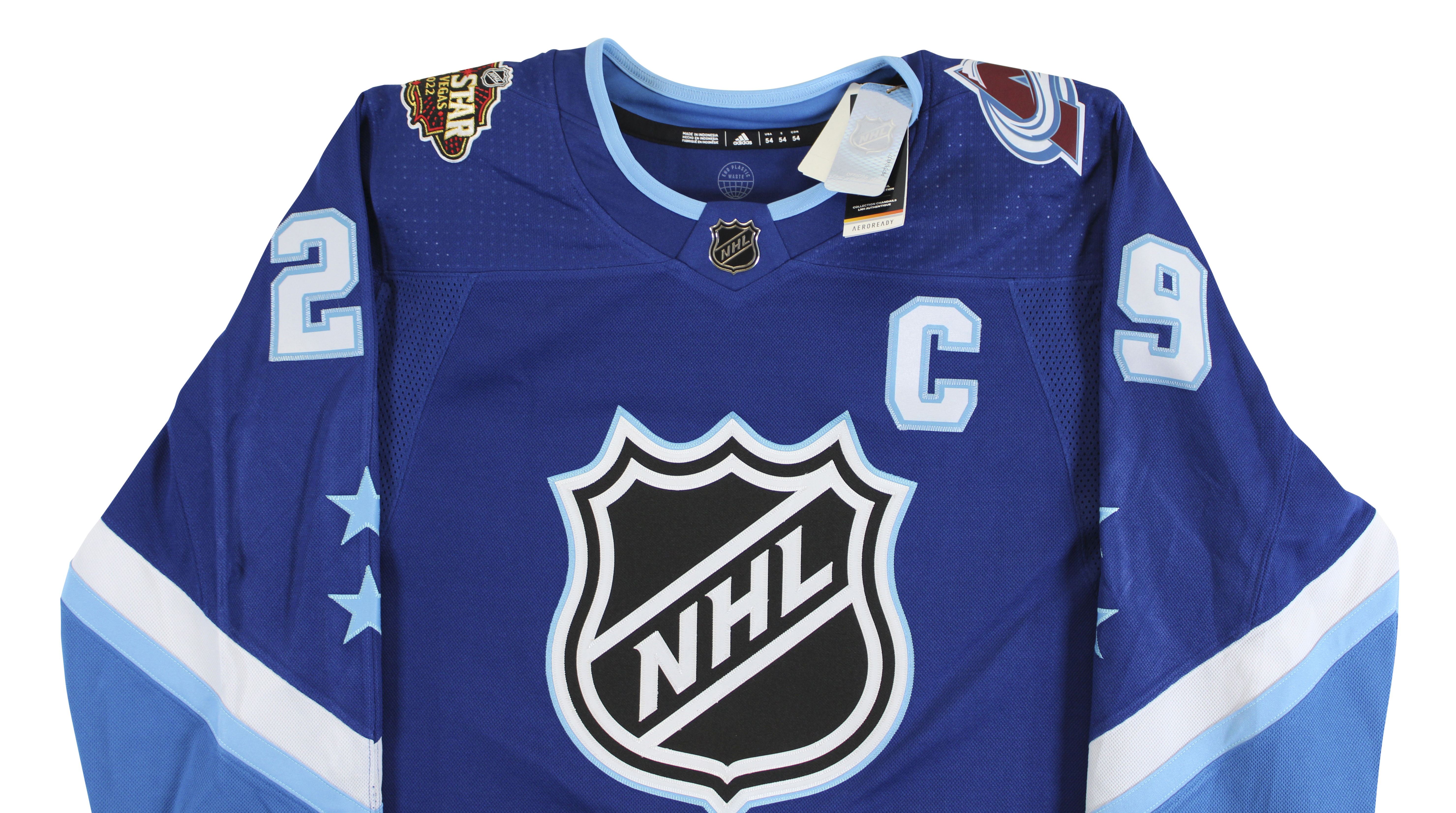 This Autographed w/ Fight Strap Blue Adidas 2022 All Star Game Size 54 Jersey has been Personally Signed by Nathan MacKinnon of the Colorado Avalanche. This item is 100% Authentic to includes a numbered hologram by Fanatics. The authenticity can be verified on Fanatics website.