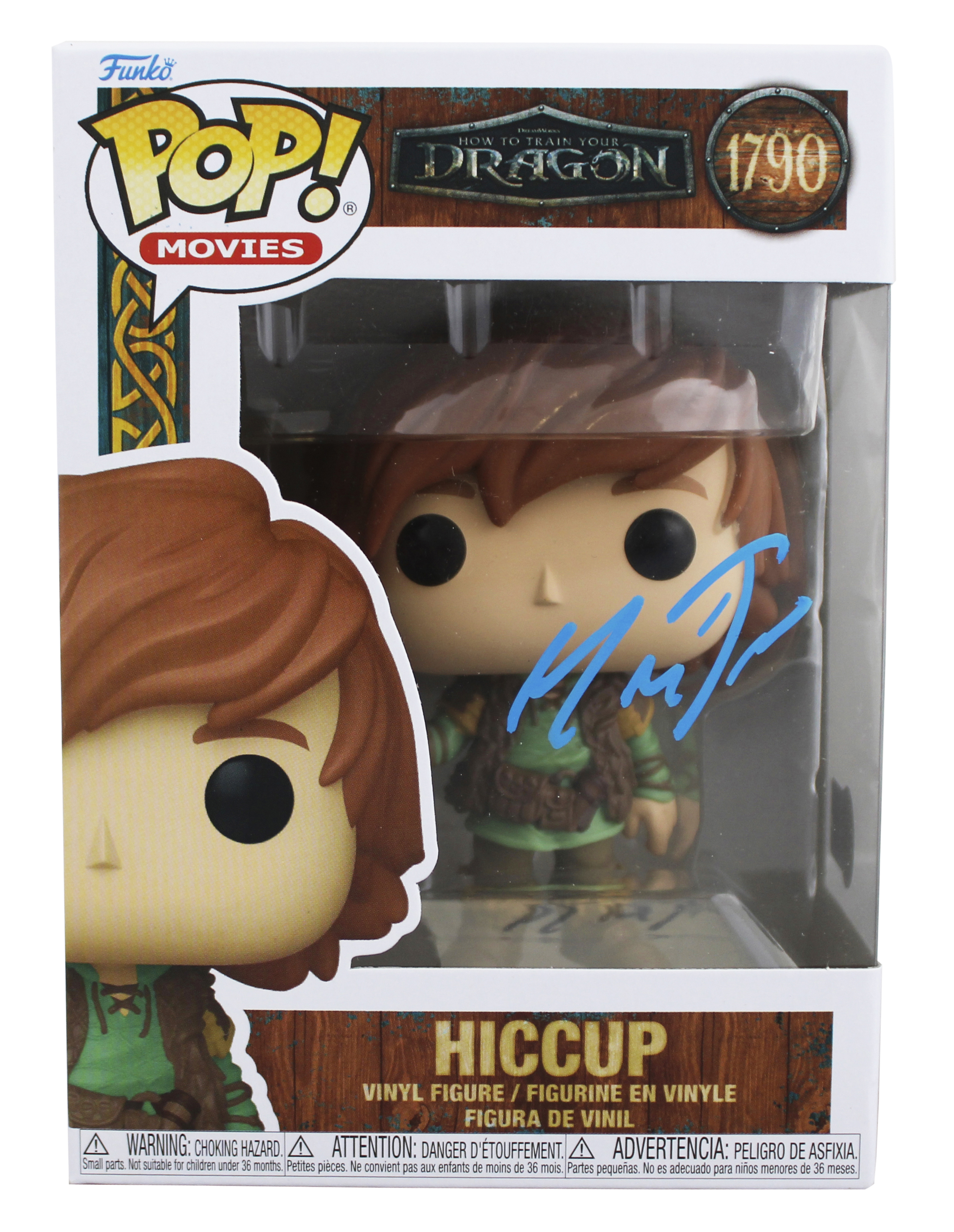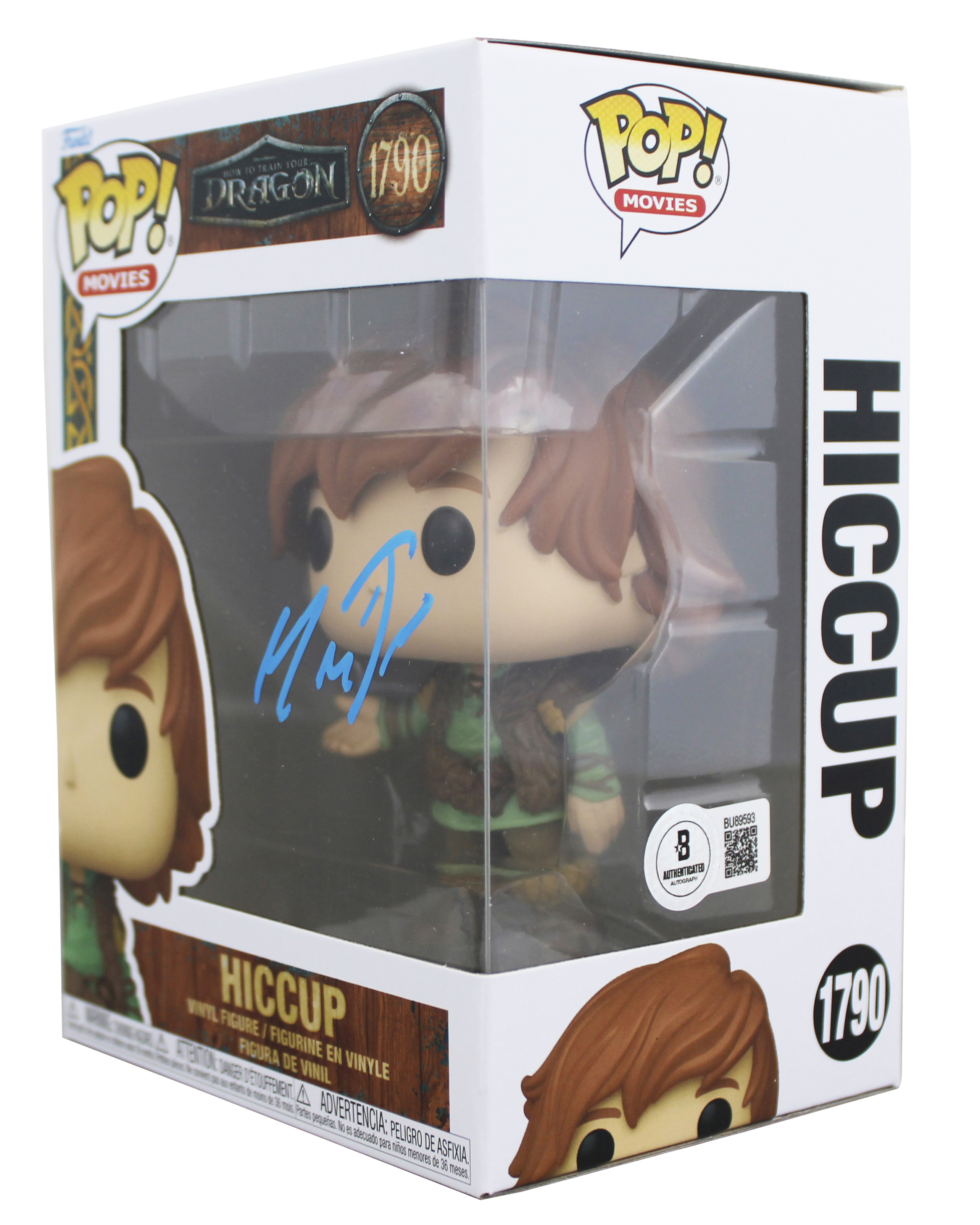 This Autographed Hiccup #1790 Funko Pop Vinyl Figure has been Personally Signed by Mason Thames of How to Train Your Dragon. This item is 100% Authentic to include a hologram by Beckett Authentication Services. This item will come with an affixed Beckett Authentication Services (BAS) authentication sticker, which includes a scannable QR code to verify authenticity. Please note that Beckett no longer provides serial-numbered COA cards, and the attached BAS sticker will serve as the complete authentication for this item. The authenticity can be verified on Beckett Authentication Services website. This will be shipped in a Pop Protector, each will have some handling wear from shipment to the signing and back. These would not be considered mint.