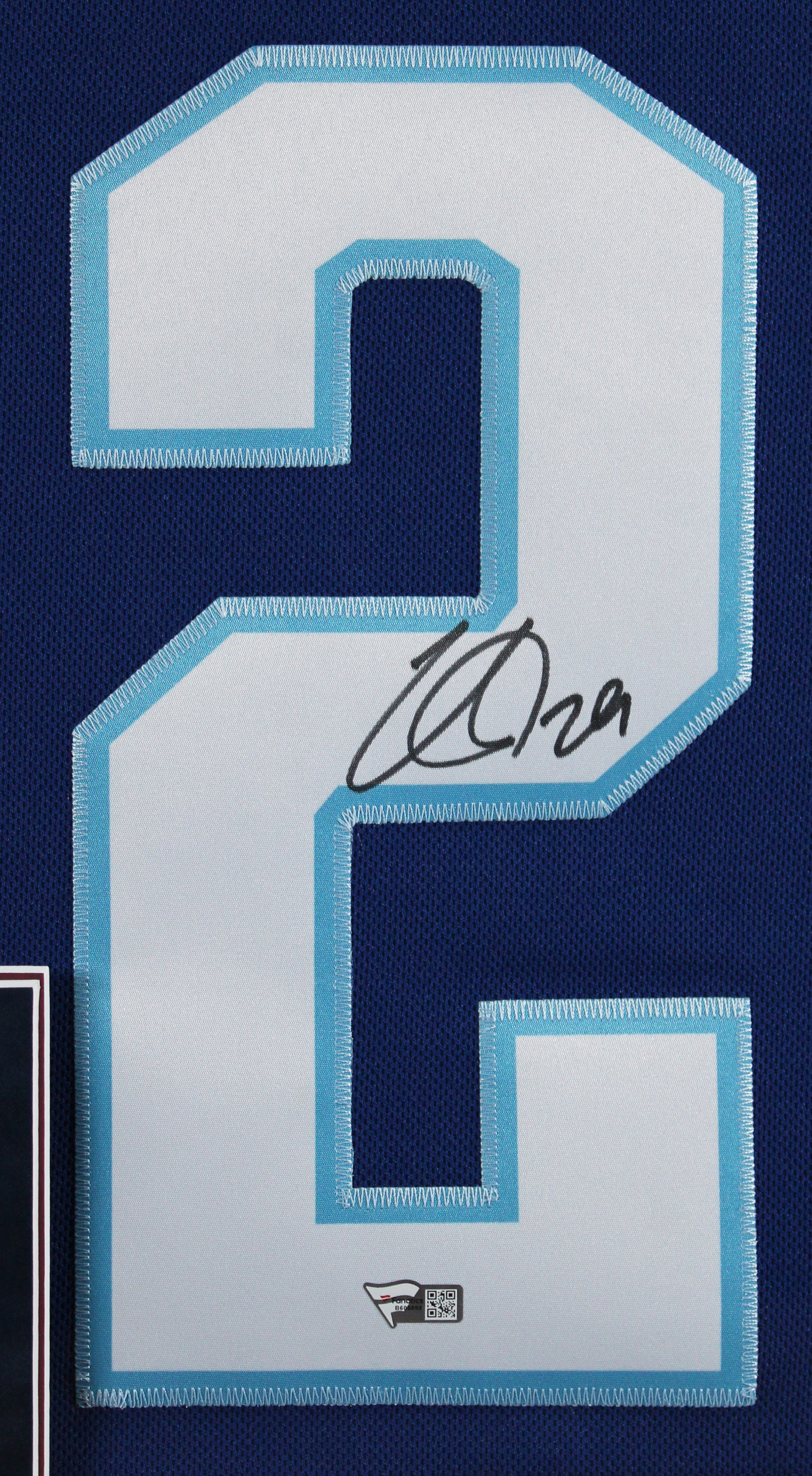 This Autographed w/ Fight Strap Blue Adidas 2022 All Star Game Size 54 Framed Jersey has been Personally Signed by Nathan MacKinnon of the Colorado Avalanche. This item is 100% Authentic to includes a numbered hologram by Fanatics. The authenticity can be verified on Fanatics website. This item has been professionally framed to overall dimensions of approximately 32 x 37 inches.