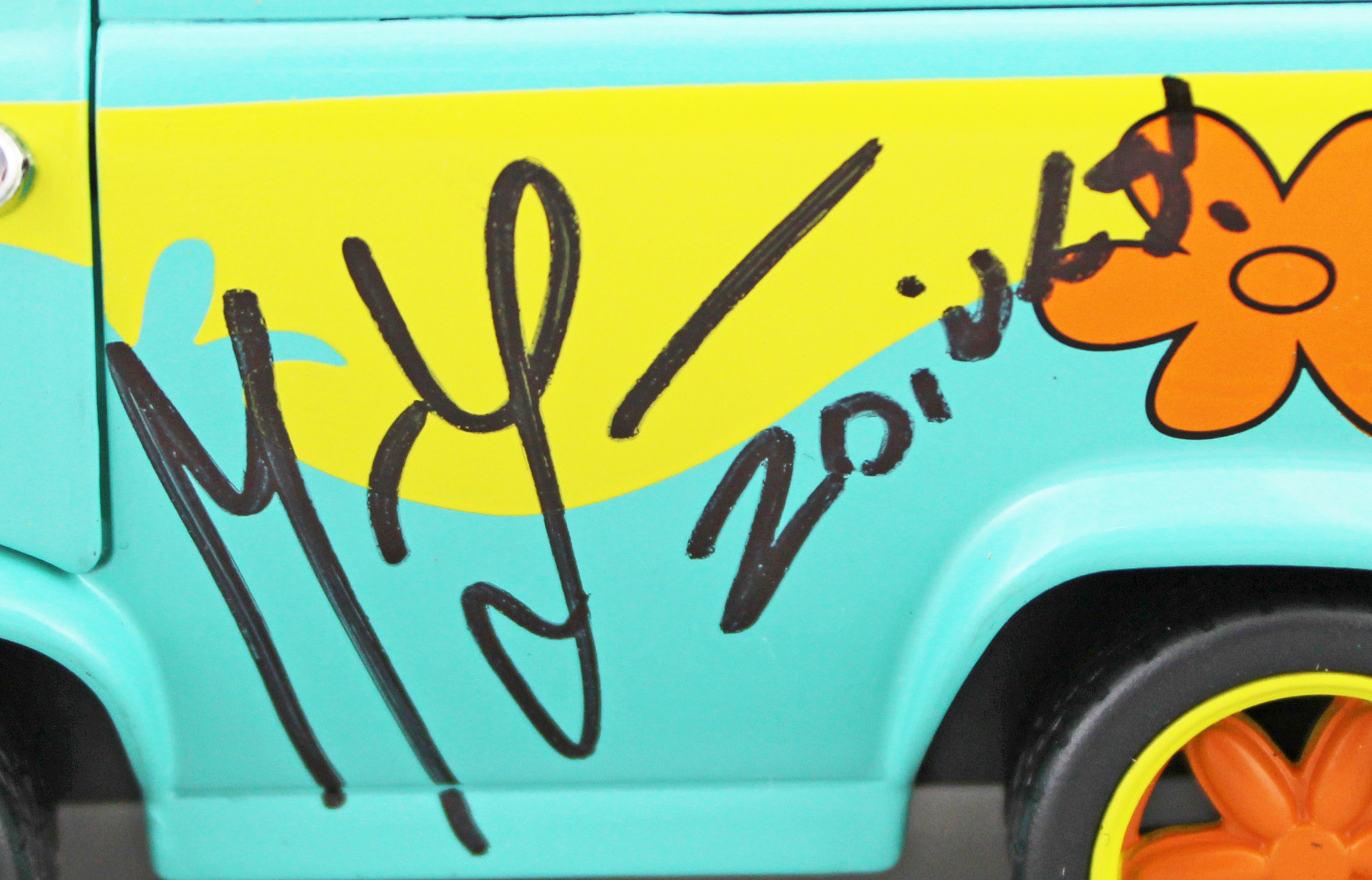 This Autographed 1:24 Die Cast Metal Mystery Machine w/ Shaggy & Scooby-Doo with the inscription of "Zoinks!" has been Personally Signed by Matthew Lillard of Scooby-Doo. This item is 100% Authentic to include a hologram by Beckett Authentication Services. This item will come with an affixed Beckett Authentication Services (BAS) authentication sticker, which includes a scannable QR code to verify authenticity. Please note that Beckett no longer provides serial-numbered COA cards, and the attached BAS sticker will serve as the complete authentication for this item. This is a BAS Witnessed Protection Program item which means a Beckett Authentication Service representative was present when this item was being signed.We have multiples of this same item. While the photographs are representative of this item, the size, placement and strength of the signature may vary. Each item is hand signed, therefore, each autograph is unique. Please refer to photos for condition prior to purchase.