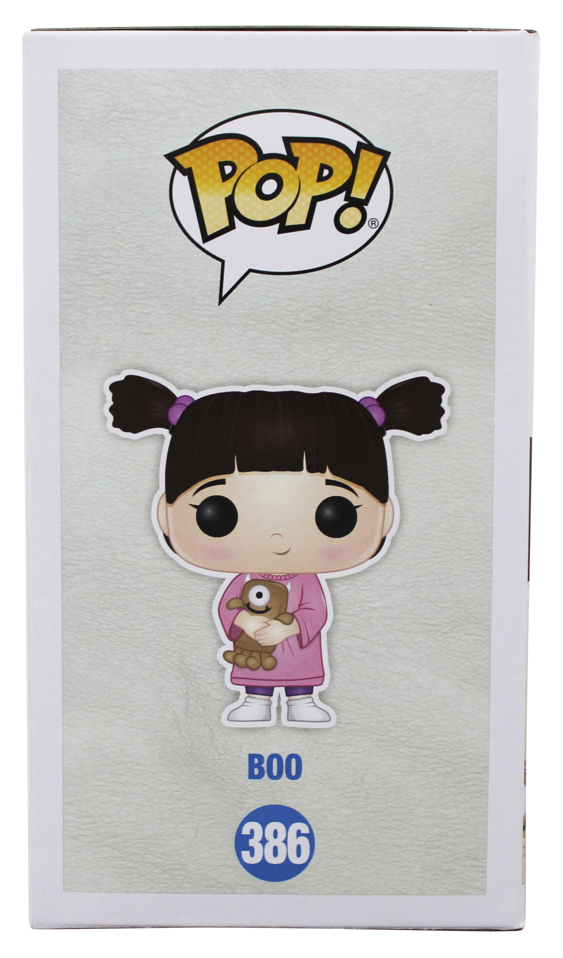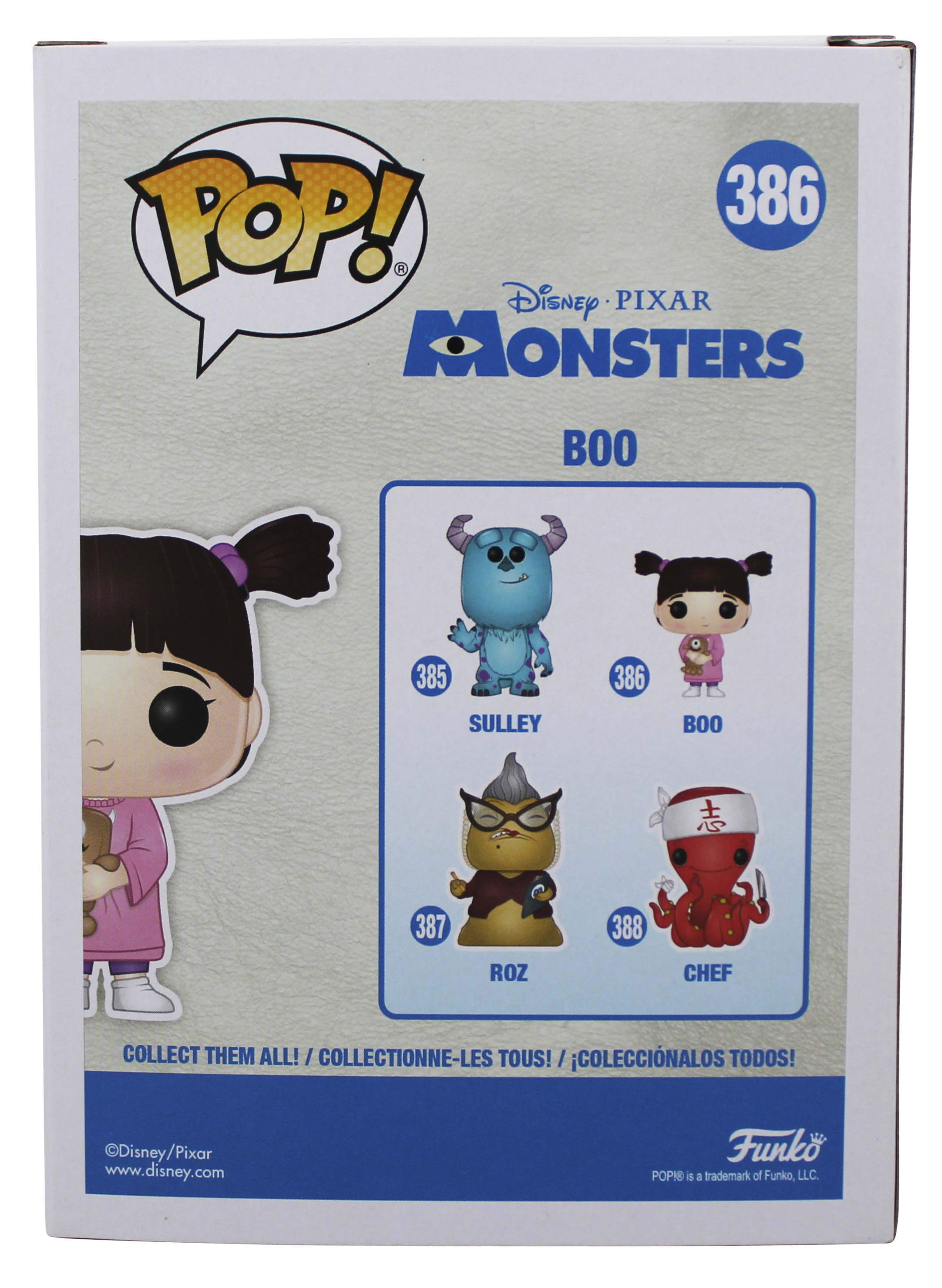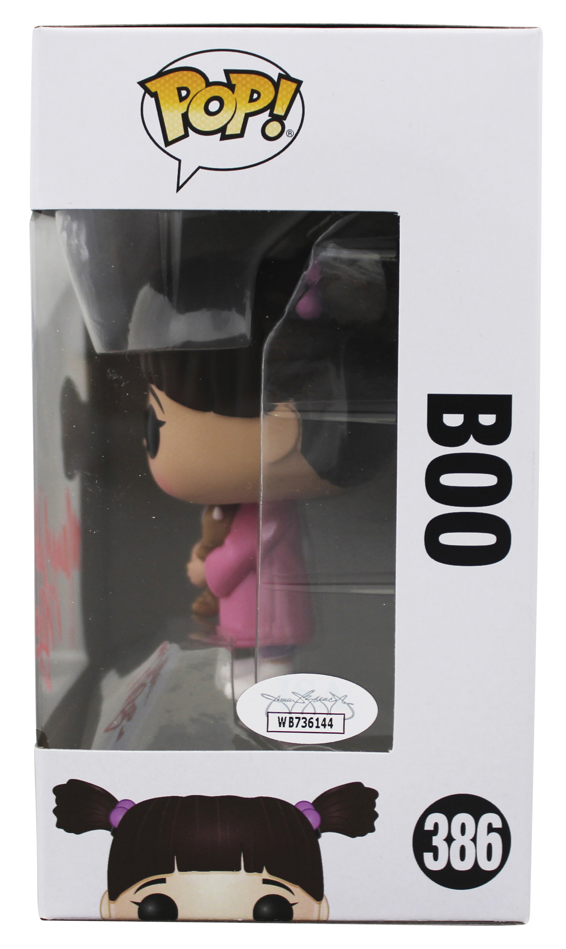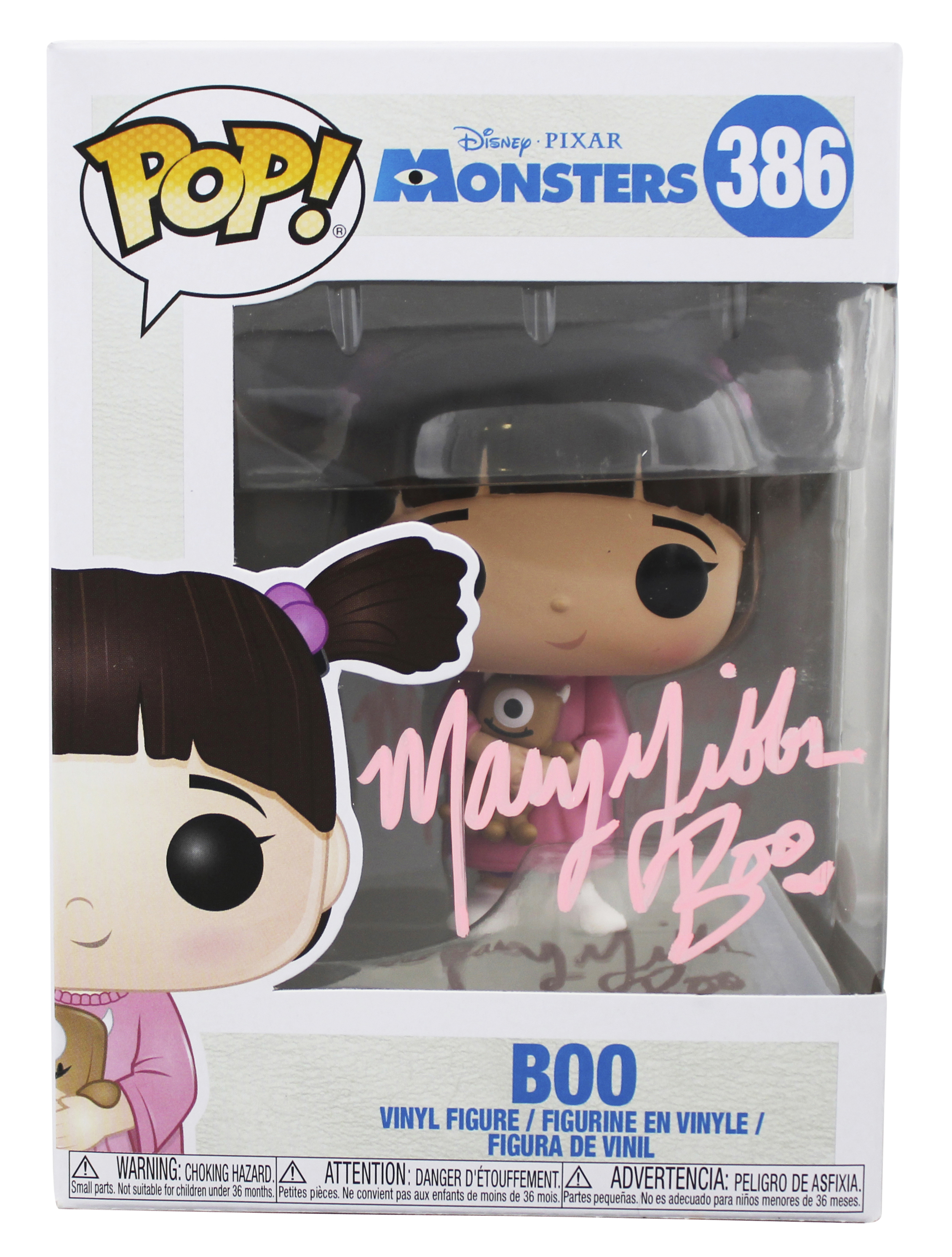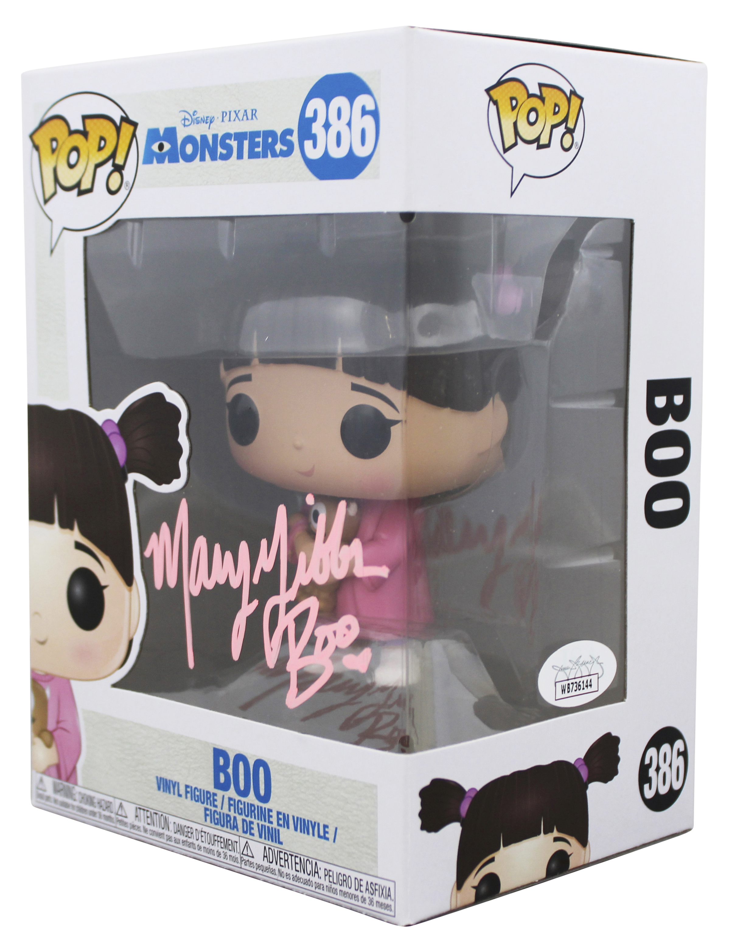 This Autographed Boo #386 Funko Pop Vinyl Figure with the inscription of "Boo" has been Personally Signed by Mary Gibbs of Monsters Inc.. This item is 100% Authentic to include a Certificate of Authenticity (COA) / hologram by JSA. The authenticity can be verified on JSA website. This will be shipped in a Pop Protector. This Funko will have some handling wear from shipment to the signing and back. Please refer to pictures for item's condition prior to purchase.