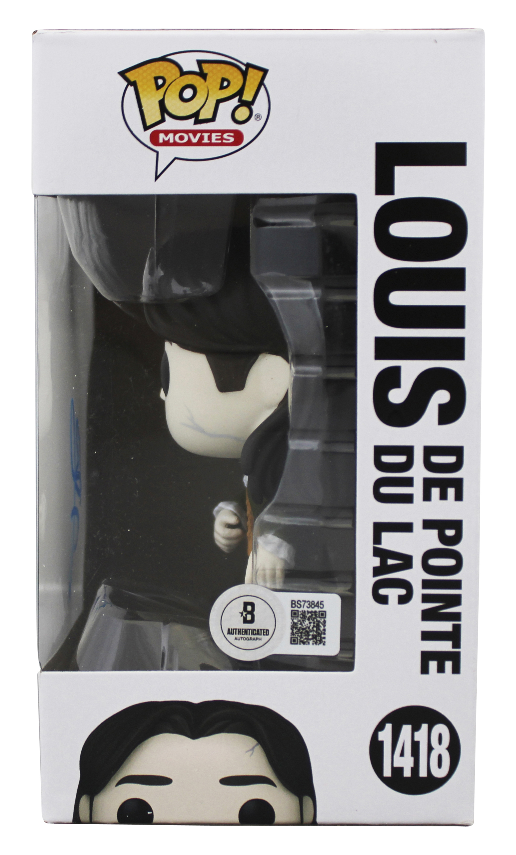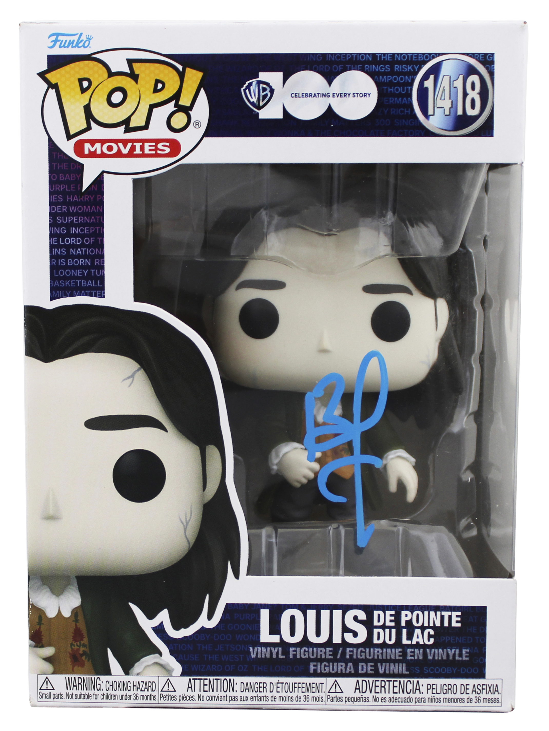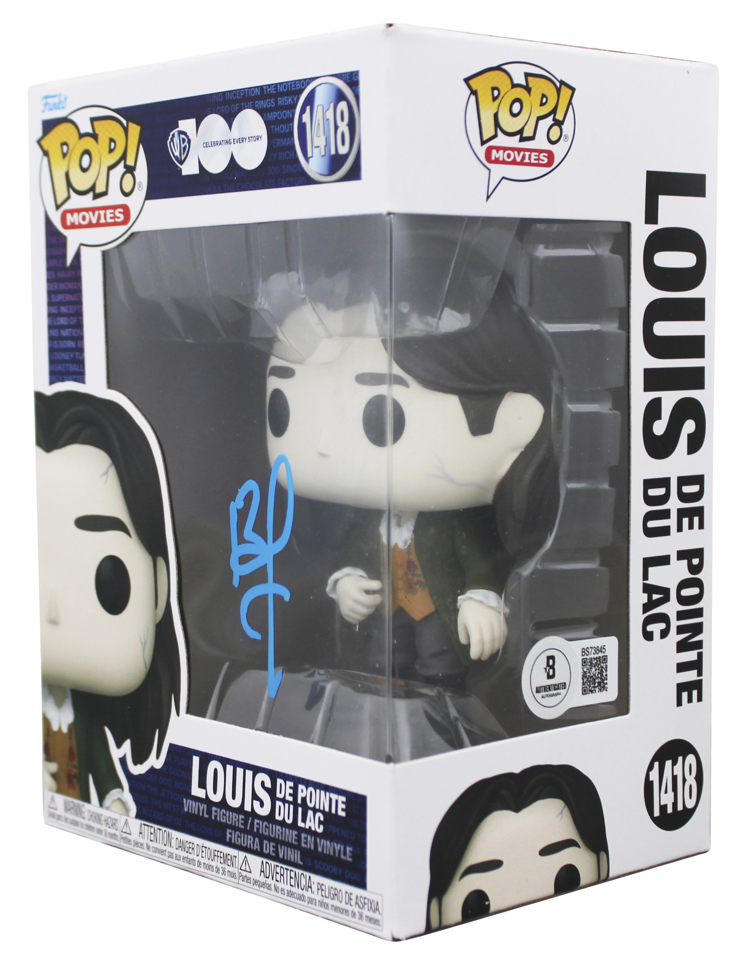 This Autographed Louis De Pointe Du Lac #1418 Funko Pop Vinyl Figure has been Personally Signed by Brad Pitt of Interview with the Vampire. This item is 100% Authentic to include a hologram by Beckett Authentication Services. This item will come with an affixed Beckett Authentication Services (BAS) authentication sticker, which includes a scannable QR code to verify authenticity. Please note that Beckett no longer provides serial-numbered COA cards, and the attached BAS sticker will serve as the complete authentication for this item. The authenticity can be verified on Beckett Authentication Services website. This will be shipped in a Pop Protector. This Funko will have some handling wear from shipment to the signing and back. Please refer to pictures for item's condition prior to purchase.