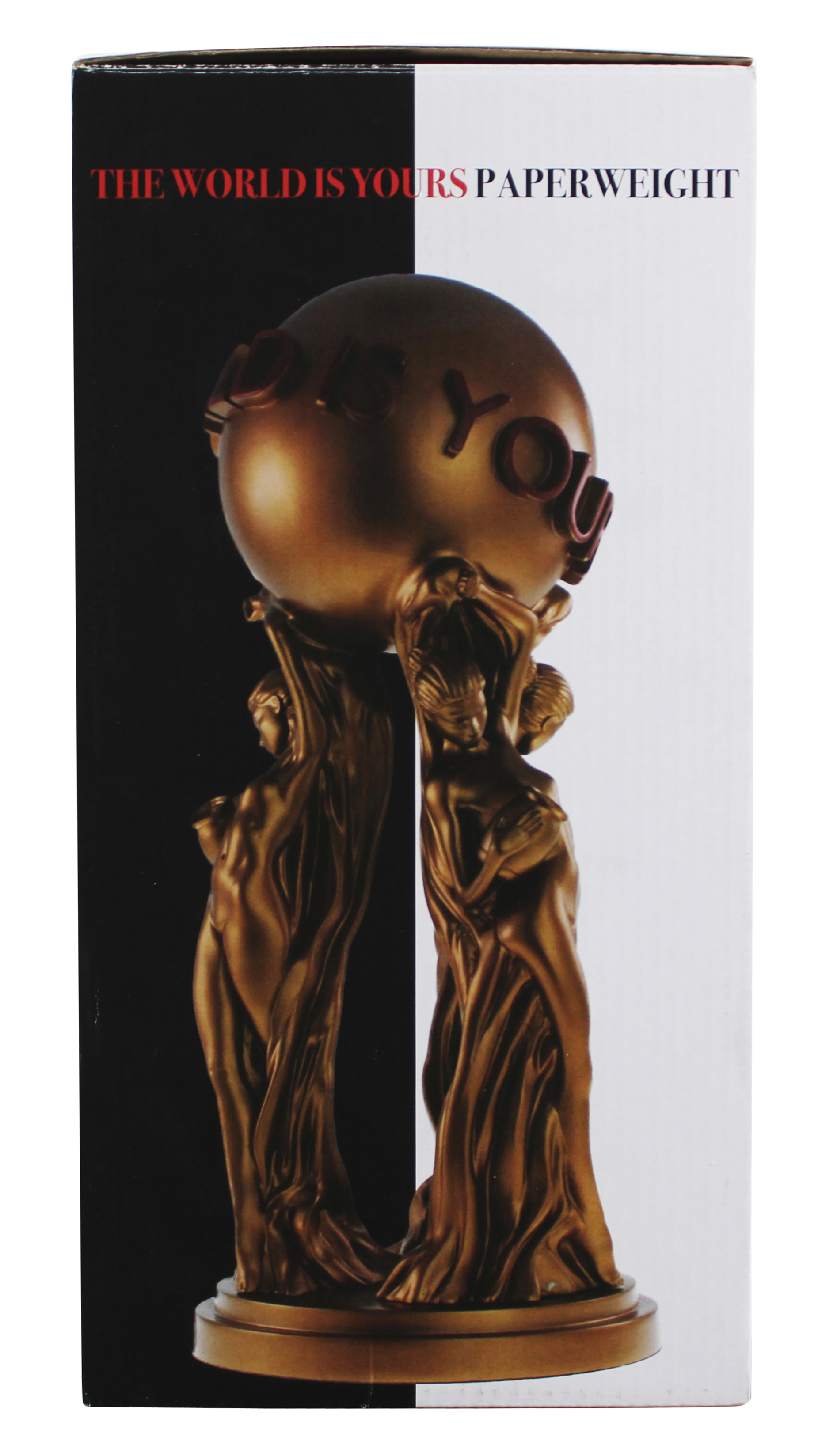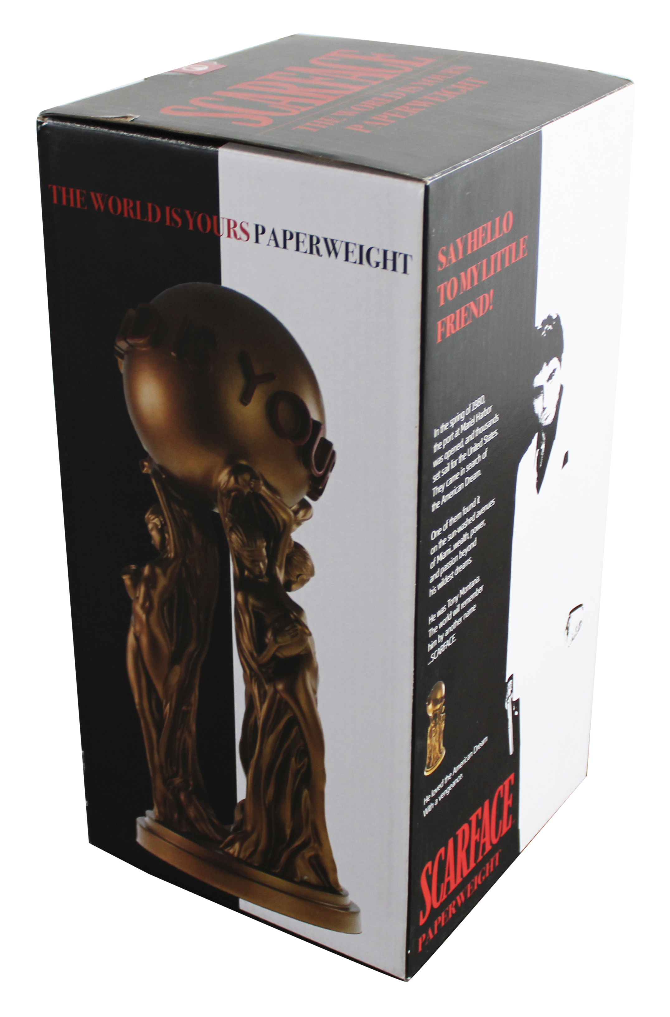 The authenticity can be verified on Beckett Authentication Services website. This Autographed 12" Scarface The World Is Yours Paperweight Statue has been Personally Signed by Al Pacino of Scarface. This item is 100% Authentic to include a hologram by Beckett Authentication Services. This item will come with an affixed Beckett Authentication Services (BAS) authentication sticker, which includes a scannable QR code to verify authenticity. Please note that Beckett no longer provides serial-numbered COA cards, and the attached BAS sticker will serve as the complete authentication for this item. The authenticity can be verified on Beckett Authentication Services website. The statue measures approximately 12 inches tall, and the diameter of the base of the statue measures approximately 5.25 inches.