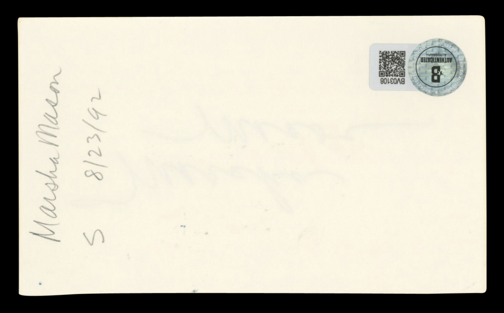 This Autographed 3x5 Index Card has been Personally Signed by Marsha Mason of Cinderella Liberty. This item is 100% Authentic to include a hologram by Beckett Authentication Services. This item will come with an affixed Beckett Authentication Services (BAS) authentication sticker, which includes a scannable QR code to verify authenticity. Please note that Beckett no longer provides serial-numbered COA cards, and the attached BAS sticker will serve as the complete authentication for this item. The authenticity can be verified on Beckett Authentication Services website.