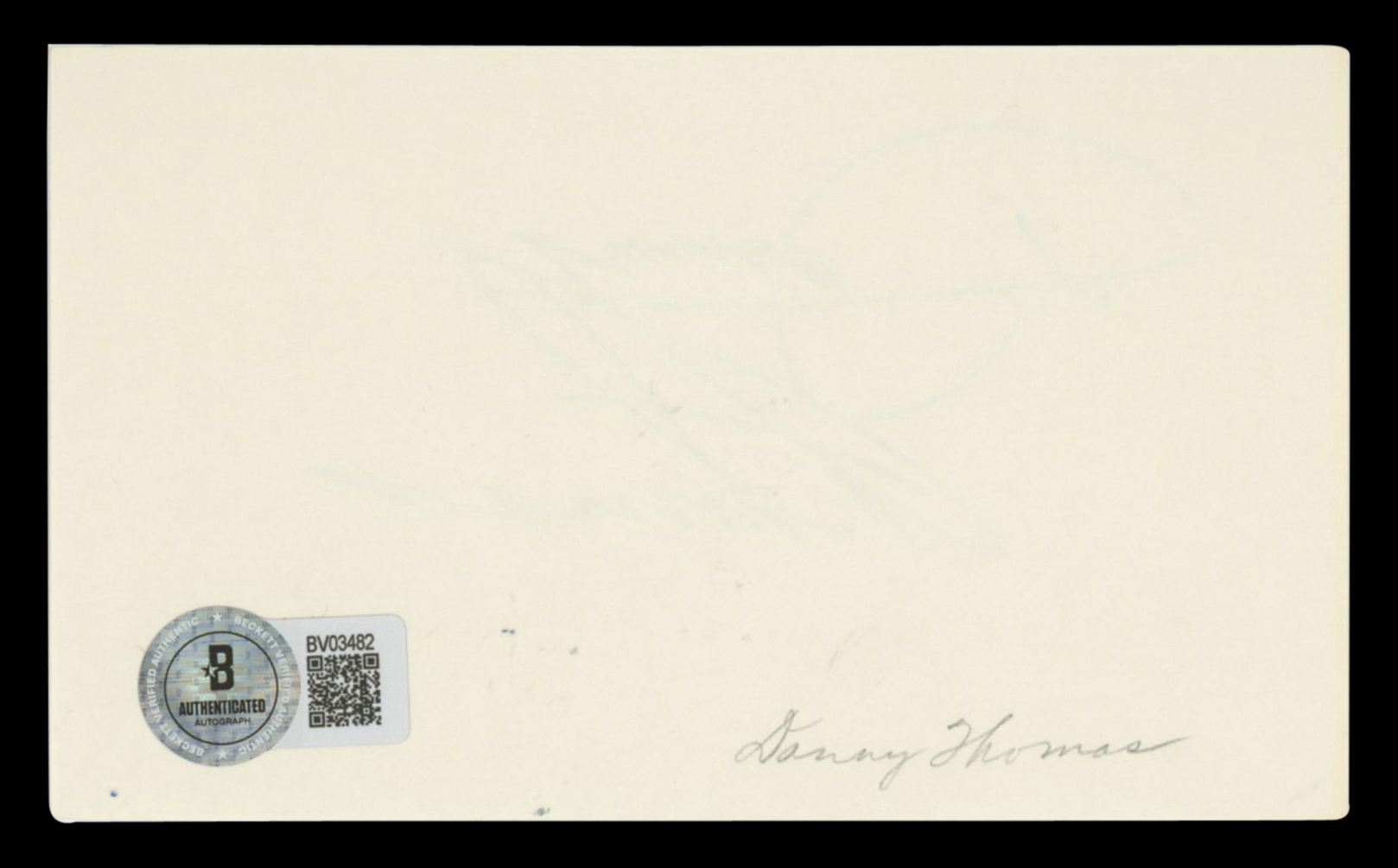 This Autographed 3x5 Index Card has been Personally Signed by Danny Thomas of The Danny Thomas Show. This item is 100% Authentic to include a hologram by Beckett Authentication Services. This item will come with an affixed Beckett Authentication Services (BAS) authentication sticker, which includes a scannable QR code to verify authenticity. Please note that Beckett no longer provides serial-numbered COA cards, and the attached BAS sticker will serve as the complete authentication for this item. The authenticity can be verified on Beckett Authentication Services website.
