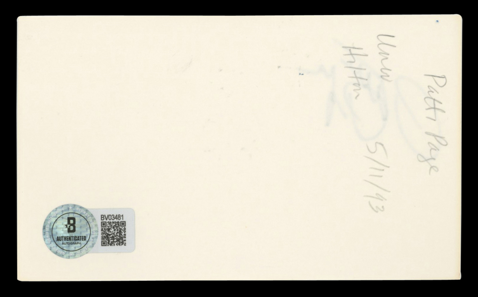 This Autographed 3x5 Index Card has been Personally Signed by Patti Page of Jimmy Joy Band. This item is 100% Authentic to include a hologram by Beckett Authentication Services. This item will come with an affixed Beckett Authentication Services (BAS) authentication sticker, which includes a scannable QR code to verify authenticity. Please note that Beckett no longer provides serial-numbered COA cards, and the attached BAS sticker will serve as the complete authentication for this item. The authenticity can be verified on Beckett Authentication Services website.