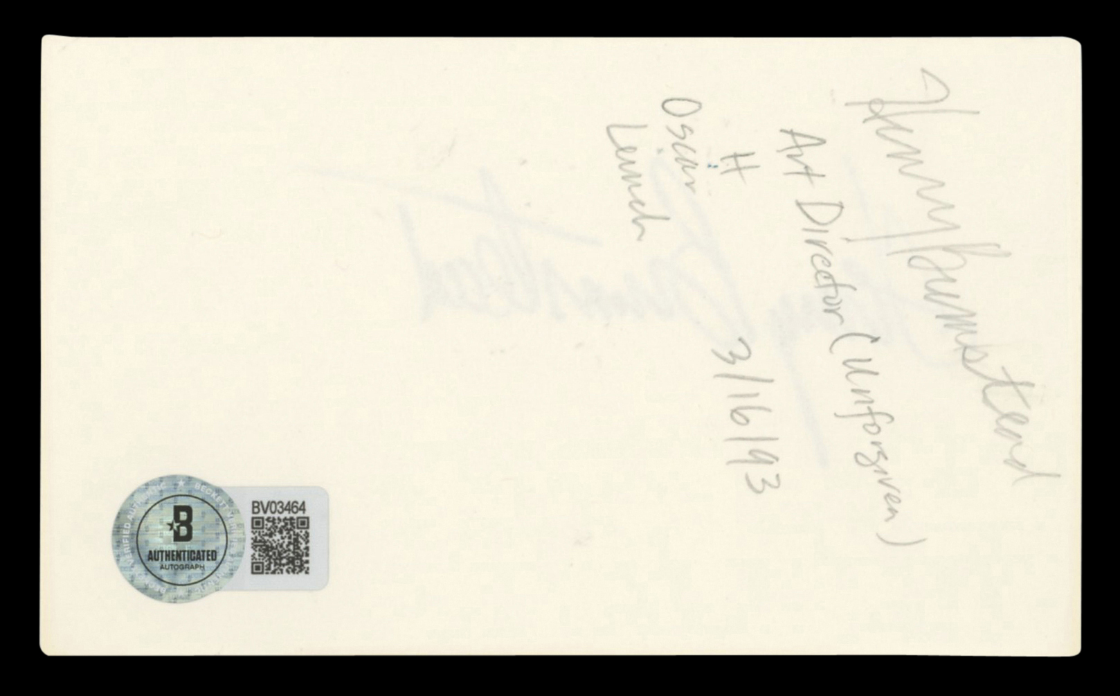 This Autographed 3x5 Index Card has been Personally Signed by Henry Bumstead. This item is 100% Authentic to include a hologram by Beckett Authentication Services. This item will come with an affixed Beckett Authentication Services (BAS) authentication sticker, which includes a scannable QR code to verify authenticity. Please note that Beckett no longer provides serial-numbered COA cards, and the attached BAS sticker will serve as the complete authentication for this item. The authenticity can be verified on Beckett Authentication Services website.