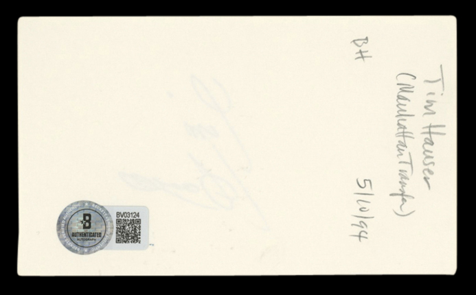This Autographed 3x5 Index Card has been Personally Signed by Tim Hauser of The Manhattan Transfer. This item is 100% Authentic to include a hologram by Beckett Authentication Services. This item will come with an affixed Beckett Authentication Services (BAS) authentication sticker, which includes a scannable QR code to verify authenticity. Please note that Beckett no longer provides serial-numbered COA cards, and the attached BAS sticker will serve as the complete authentication for this item. The authenticity can be verified on Beckett Authentication Services website.