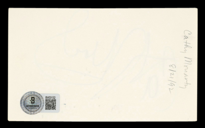 This Autographed 3x5 Index Card has been Personally Signed by Cathy Moriarty of Raging Bull. This item is 100% Authentic to include a hologram by Beckett Authentication Services. This item will come with an affixed Beckett Authentication Services (BAS) authentication sticker, which includes a scannable QR code to verify authenticity. Please note that Beckett no longer provides serial-numbered COA cards, and the attached BAS sticker will serve as the complete authentication for this item. The authenticity can be verified on Beckett Authentication Services website.