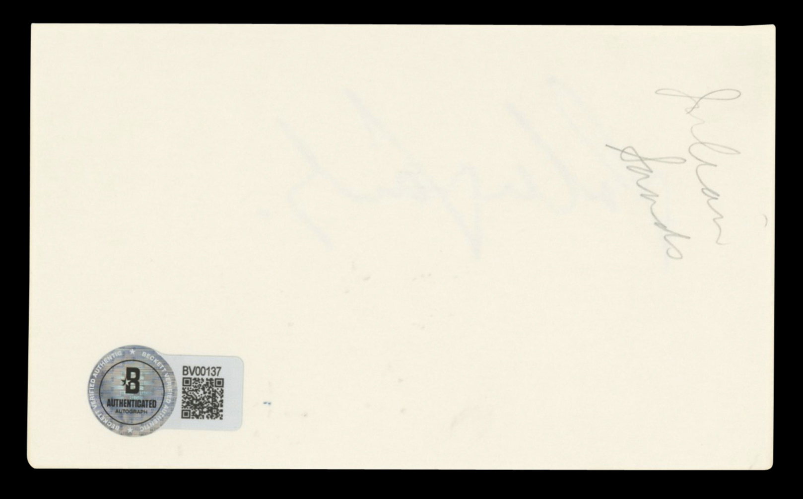 This Autographed 3x5 Index Card has been Personally Signed by Julian Sands of A Room with a View. This item is 100% Authentic to include a hologram by Beckett Authentication Services. This item will come with an affixed Beckett Authentication Services (BAS) authentication sticker, which includes a scannable QR code to verify authenticity. Please note that Beckett no longer provides serial-numbered COA cards, and the attached BAS sticker will serve as the complete authentication for this item. The authenticity can be verified on Beckett Authentication Services website.
