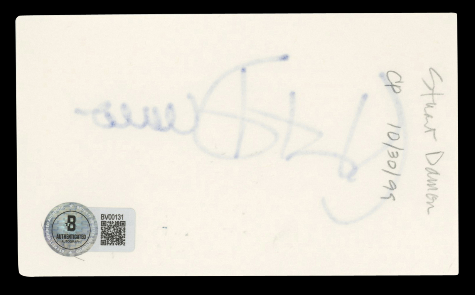 This Autographed 3x5 Index Card has been Personally Signed by Stuart Damon of General Hospital. This item is 100% Authentic to include a hologram by Beckett Authentication Services. This item will come with an affixed Beckett Authentication Services (BAS) authentication sticker, which includes a scannable QR code to verify authenticity. Please note that Beckett no longer provides serial-numbered COA cards, and the attached BAS sticker will serve as the complete authentication for this item. The authenticity can be verified on Beckett Authentication Services website.