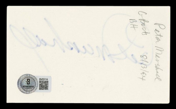 Peter Marshall The Hollywood Squares Signed 3x5 Index Card BAS #BV03114