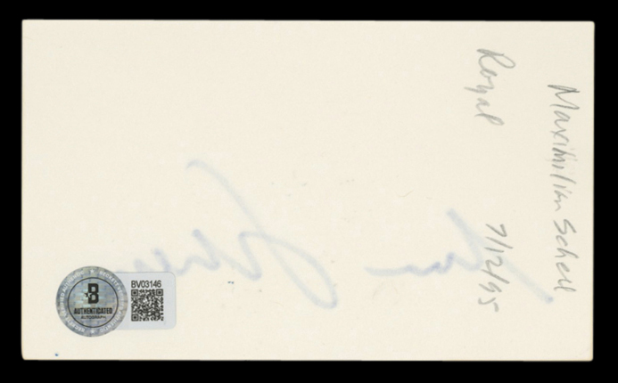Maximilian Schell The Man in the Glass Booth Signed 3x5 Index Card BAS #BV03146