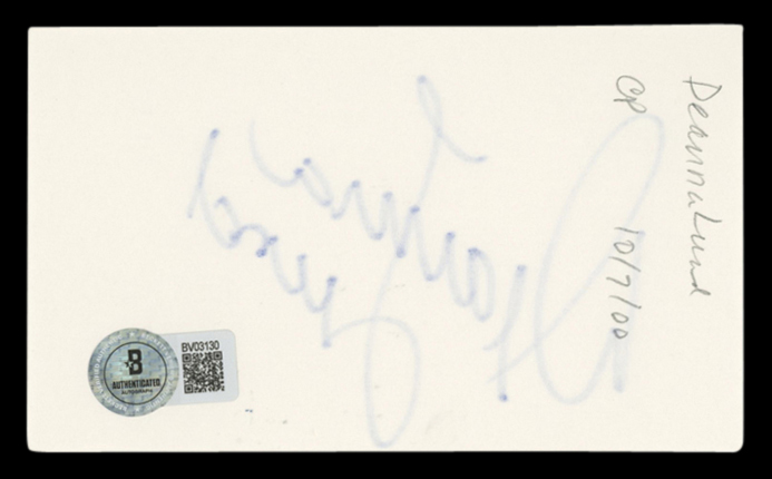 This Autographed 3x5 Index Card has been Personally Signed by Deanna Lund of Land of the Giants. This item is 100% Authentic to include a hologram by Beckett Authentication Services. This item will come with an affixed Beckett Authentication Services (BAS) authentication sticker, which includes a scannable QR code to verify authenticity. Please note that Beckett no longer provides serial-numbered COA cards, and the attached BAS sticker will serve as the complete authentication for this item. The authenticity can be verified on Beckett Authentication Services website.