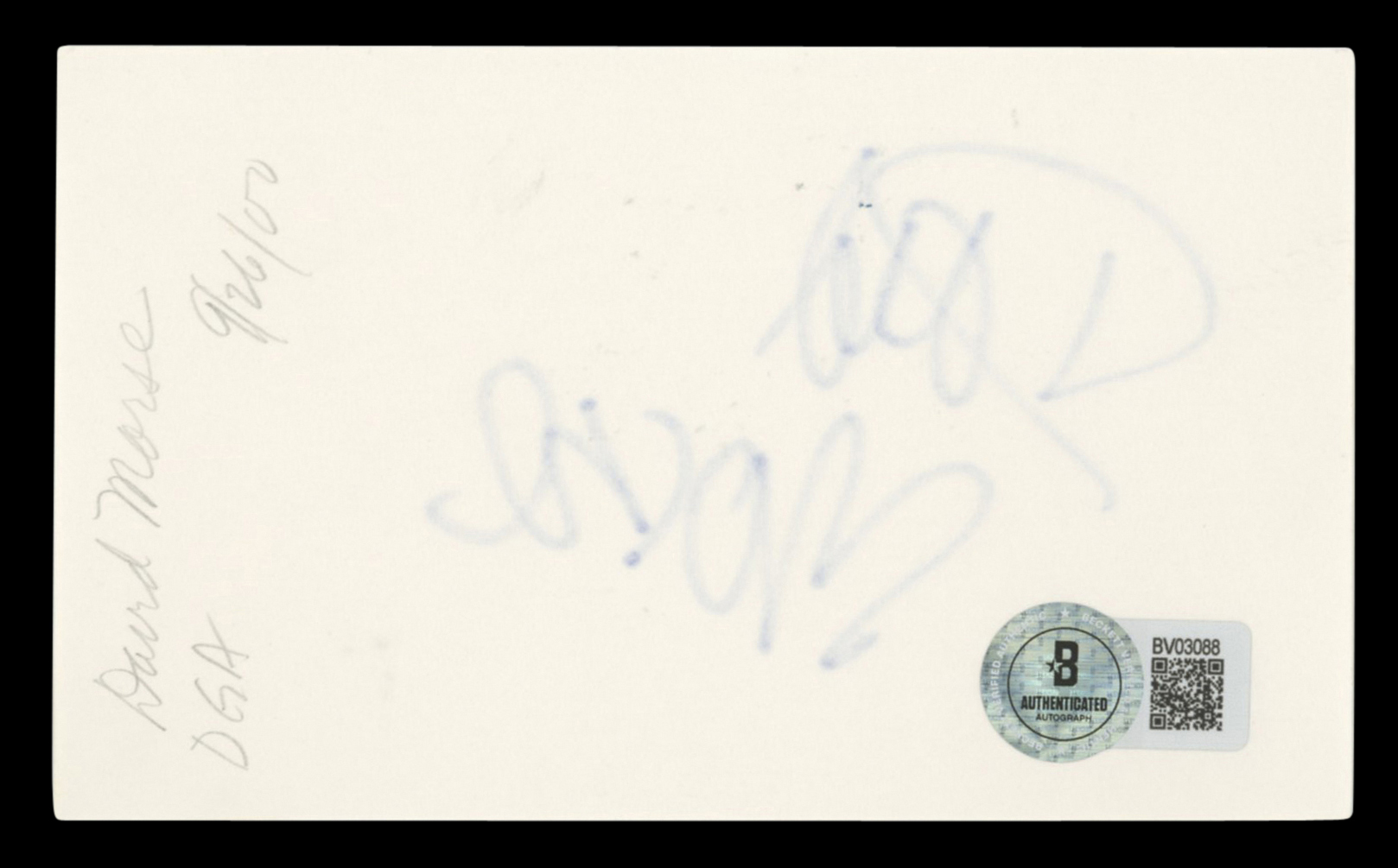 This Autographed 3x5 Index Card has been Personally Signed by David Morse of St. Elsewhere. This item is 100% Authentic to include a hologram by Beckett Authentication Services. This item will come with an affixed Beckett Authentication Services (BAS) authentication sticker, which includes a scannable QR code to verify authenticity. Please note that Beckett no longer provides serial-numbered COA cards, and the attached BAS sticker will serve as the complete authentication for this item. The authenticity can be verified on Beckett Authentication Services website.