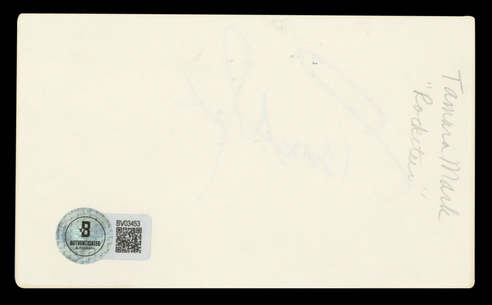 This Autographed 3x5 Index Card has been Personally Signed by Tamara Mark of New Nightmare. This item is 100% Authentic to include a hologram by Beckett Authentication Services. This item will come with an affixed Beckett Authentication Services (BAS) authentication sticker, which includes a scannable QR code to verify authenticity. Please note that Beckett no longer provides serial-numbered COA cards, and the attached BAS sticker will serve as the complete authentication for this item. The authenticity can be verified on Beckett Authentication Services website.