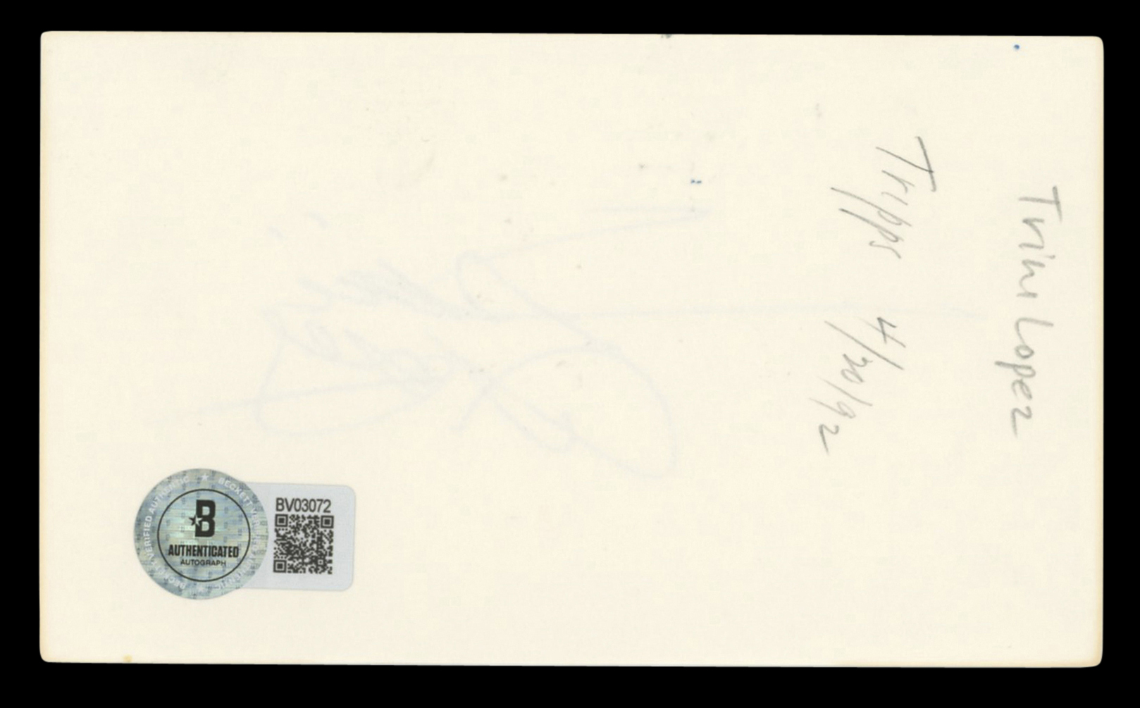 This Autographed 3x5 Index Card has been Personally Signed by Trini Lopez of The Big Beats. This item is 100% Authentic to include a hologram by Beckett Authentication Services. This item will come with an affixed Beckett Authentication Services (BAS) authentication sticker, which includes a scannable QR code to verify authenticity. Please note that Beckett no longer provides serial-numbered COA cards, and the attached BAS sticker will serve as the complete authentication for this item. The authenticity can be verified on Beckett Authentication Services website.