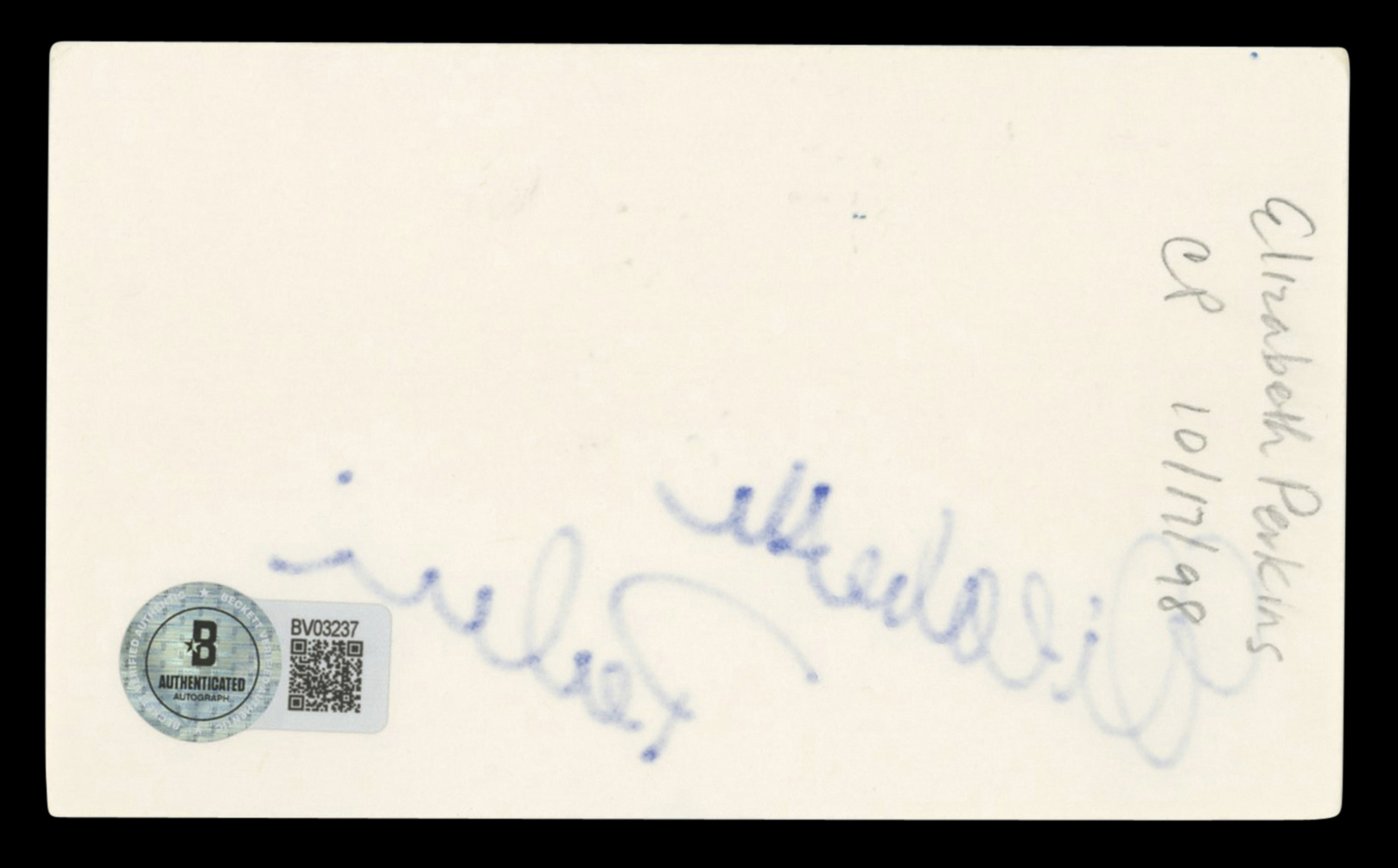 This Autographed 3x5 Index Card has been Personally Signed by Elizabeth Perkins of Big. This item is 100% Authentic to include a hologram by Beckett Authentication Services. This item will come with an affixed Beckett Authentication Services (BAS) authentication sticker, which includes a scannable QR code to verify authenticity. Please note that Beckett no longer provides serial-numbered COA cards, and the attached BAS sticker will serve as the complete authentication for this item. The authenticity can be verified on Beckett Authentication Services website.