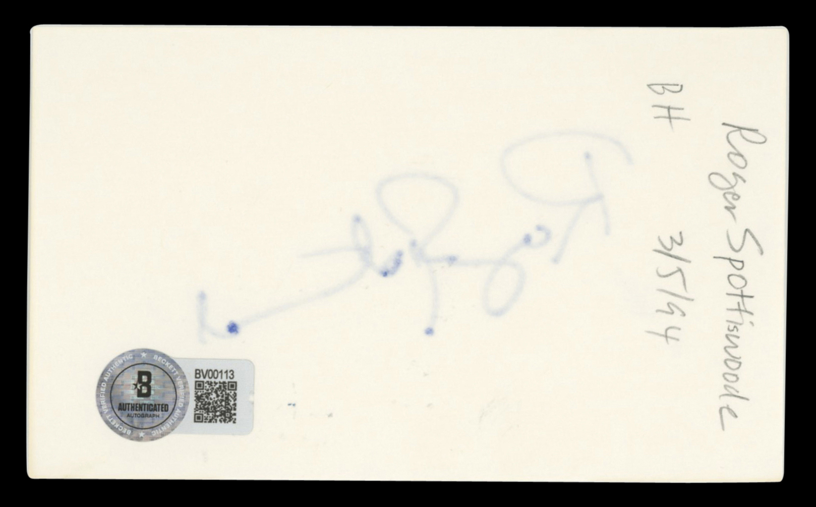 Roger Spottiswoode Authentic Signed 3x5 Index Card Autographed BAS #BV00113
