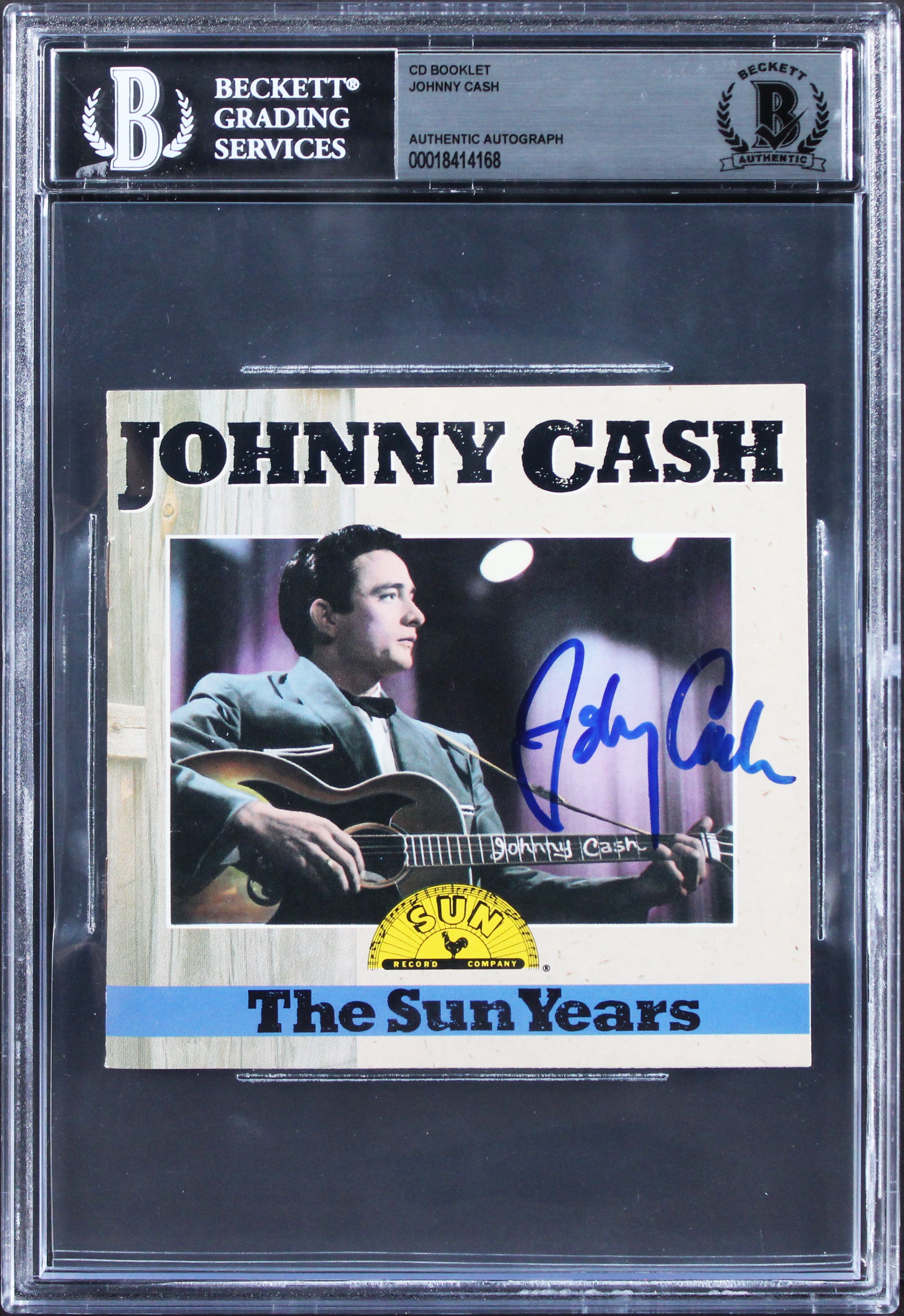 This Autographed The Sun Years Cd Cover has been Personally Signed by Johnny Cash. This item is 100% Authentic, it comes slabbed and authenticated by Beckett Authentication Services. The authenticity can be verified on Beckett Authentication Services website.
