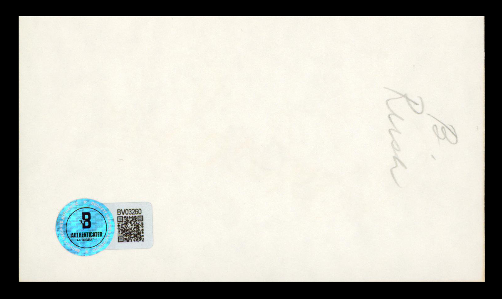 This Autographed 3x5 Index Card has been Personally Signed by Barbara Rush of It Came from Outer Space. This item is 100% Authentic to include a hologram by Beckett Authentication Services. This item will come with an affixed Beckett Authentication Services (BAS) authentication sticker, which includes a scannable QR code to verify authenticity. Please note that Beckett no longer provides serial-numbered COA cards, and the attached BAS sticker will serve as the complete authentication for this item. We have multiples of this same item. While the photographs are representative of this item, the size, placement and strength of the signature may vary. Each item is hand signed, therefore, each autograph is unique.