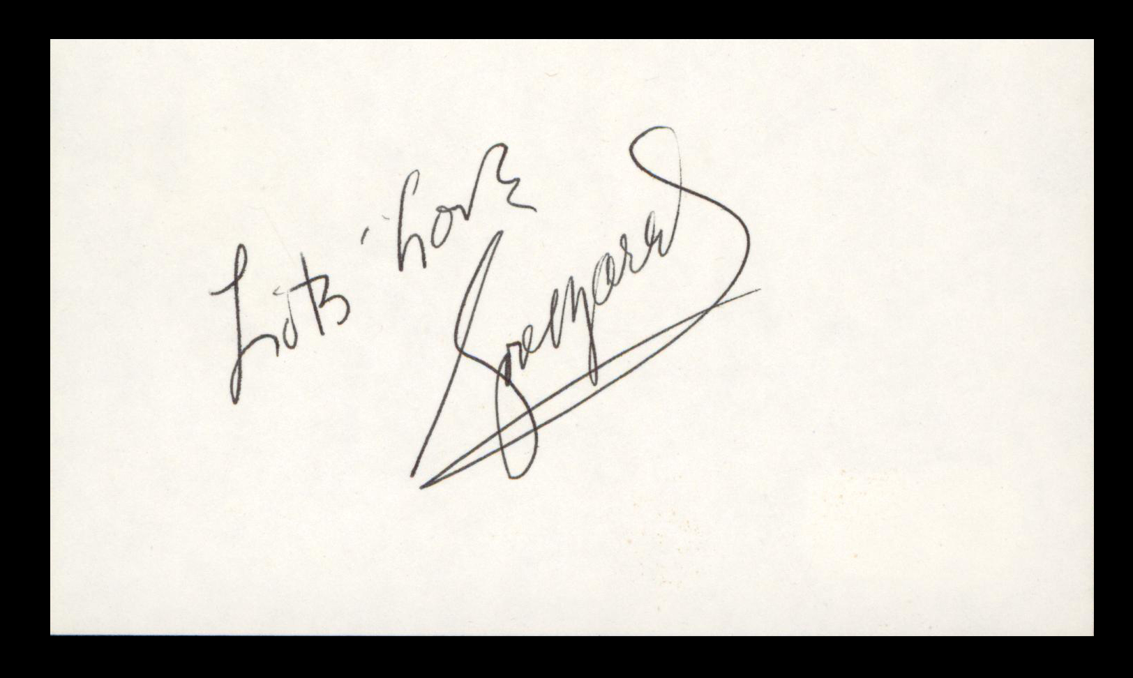 This Autographed 3x5 Index Card with the inscription of "Lots Love" has been Personally Signed by Rose Marie of The Dick Van Dyke Show. This item is 100% Authentic to include a hologram by Beckett Authentication Services. This item will come with an affixed Beckett Authentication Services (BAS) authentication sticker, which includes a scannable QR code to verify authenticity. Please note that Beckett no longer provides serial-numbered COA cards, and the attached BAS sticker will serve as the complete authentication for this item. We have multiples of this same item. While the photographs are representative of this item, the size, placement and strength of the signature may vary. Each item is hand signed, therefore, each autograph is unique.