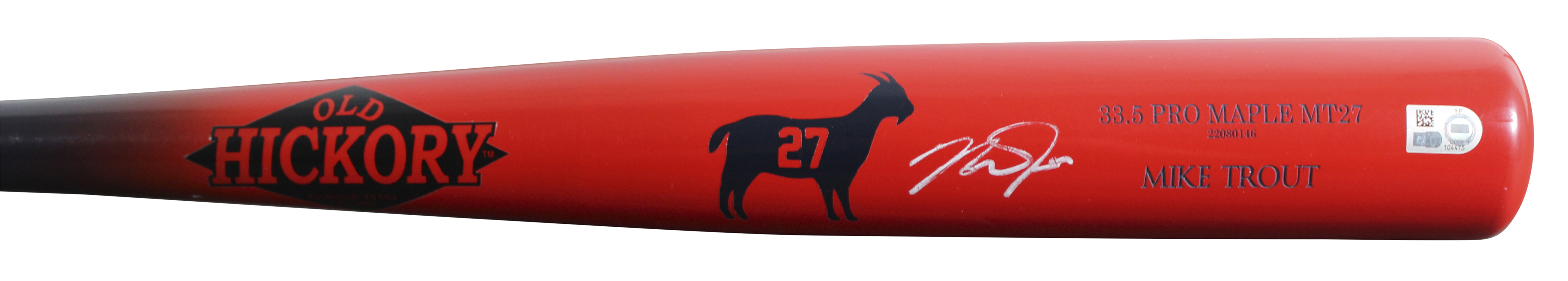 This Autographed Old Hickory Player Model 33.5 Pro Maple MT27P Baseball Bat has been Personally Signed by Mike Trout of the Los Angeles Angels. This item is 100% Authentic to include a numbered hologram from MLB. The authenticity can be verified on MLB website.