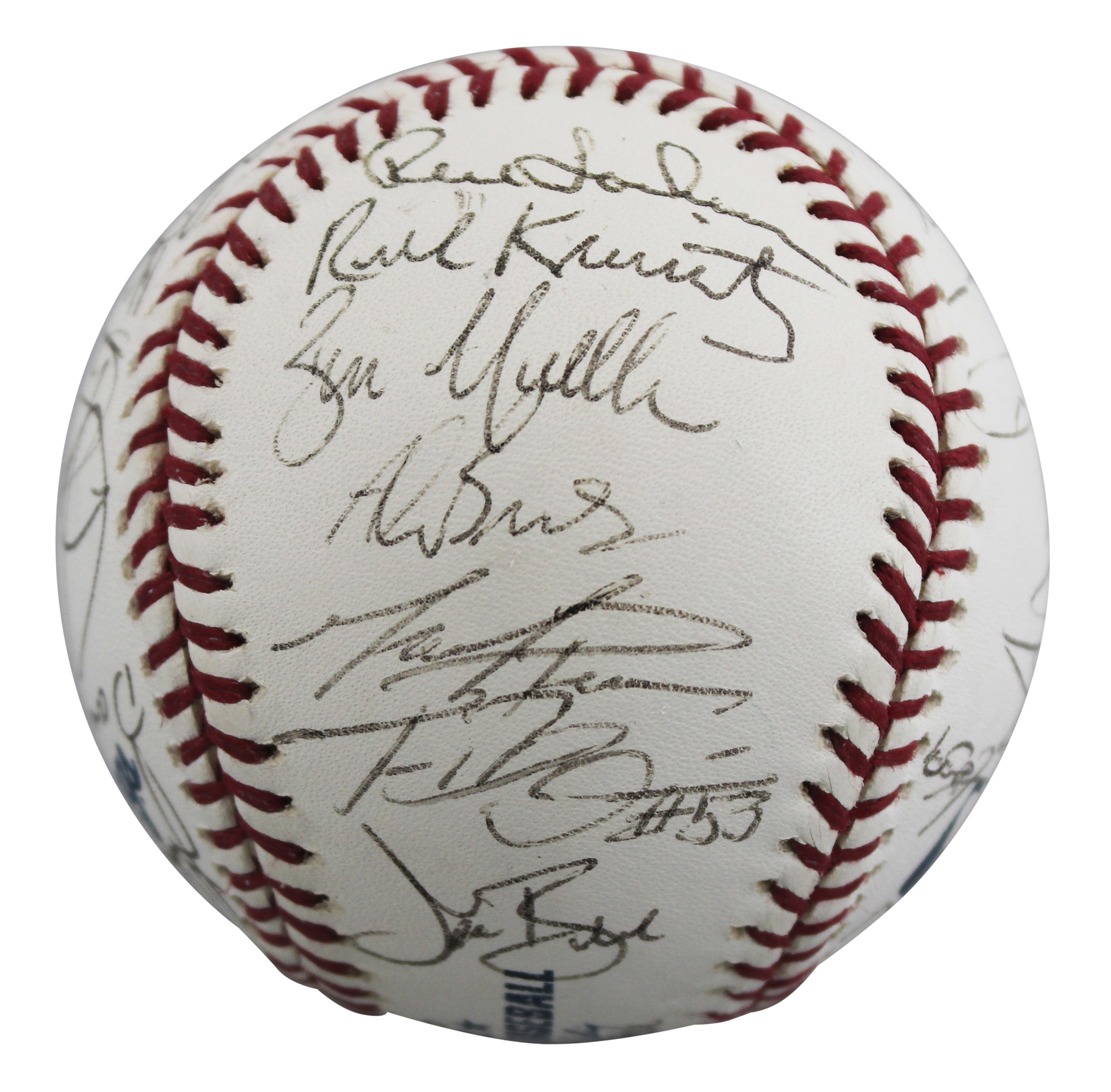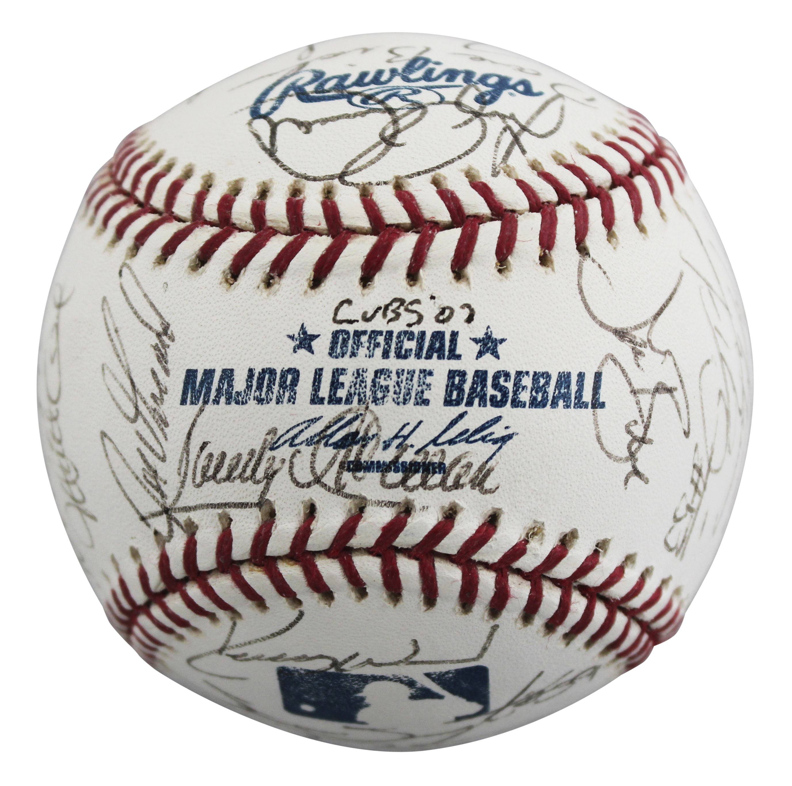 This Autographed Rawlings Official Major League Baseball Selig Baseball has been Personally Signed by Ron Santo, Fred McGriff, Mark Bellhorn, Matt Clement, Kerry Wood, Joe Girardi, Sandy Alomar Sr., Chris Stynes, Mark Prior, Francis, Beltran, Alan Benes, Rene Lacheman, Bill Mueller, Jason Bere, Rick Kranitz, Dave Bialis, Jeff Fassero, Kyle Farnsworth, Bruce Kimm, Steve Smyth, Joe Borowski, Roosevelt Brown, Corey Paterson, Carlos Zambrano, and four others of the Chicago Cubs. This item is 100% Authentic to include a Certificate of Authenticity (COA) / hologram by Beckett Authentication Services. The authenticity can be verified on Beckett Authentication Services website.
