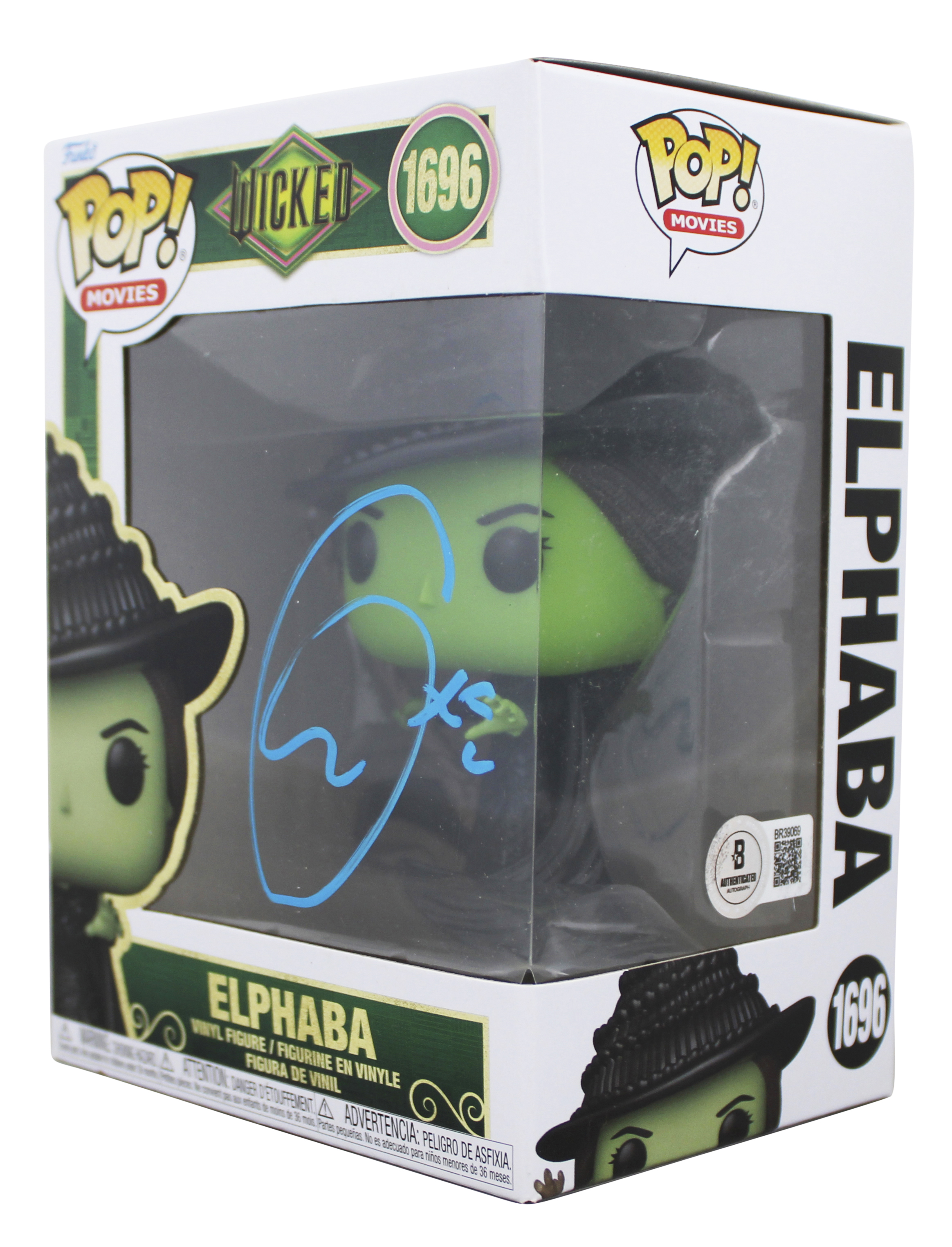 This Autographed Elphaba #1696 Funko Pop Vinyl Figure has been Personally Signed by Cynthia Erivo of Wicked. This item is 100% Authentic to include a hologram by Beckett Authentication Services. This item will come with an affixed Beckett Authentication Services (BAS) authentication sticker, which includes a scannable QR code to verify authenticity. Please note that Beckett no longer provides serial-numbered COA cards, and the attached BAS sticker will serve as the complete authentication for this item. The authenticity can be verified on Beckett Authentication Services website. This item will ship in a Pop! Protector, please refer to the photos for condition of the item prior to purchase.