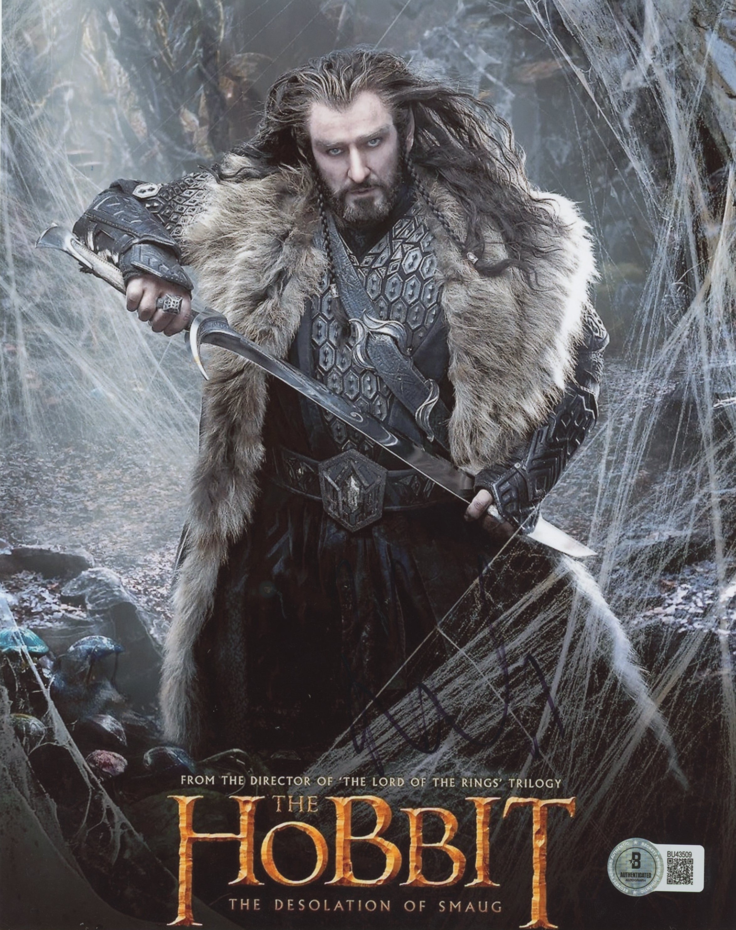 This Autographed Vertical 8x10 Photo has been Personally Signed by Richard Armitrage of The Hobbit: The Desolation of Smaug. This item is 100% Authentic to include a hologram by Beckett Authentication Services. This item will come with an affixed Beckett Authentication Services (BAS) authentication sticker, which includes a scannable QR code to verify authenticity. Please note that Beckett no longer provides serial-numbered COA cards, and the attached BAS sticker will serve as the complete authentication for this item. The authenticity can be verified on Beckett Authentication Services website.