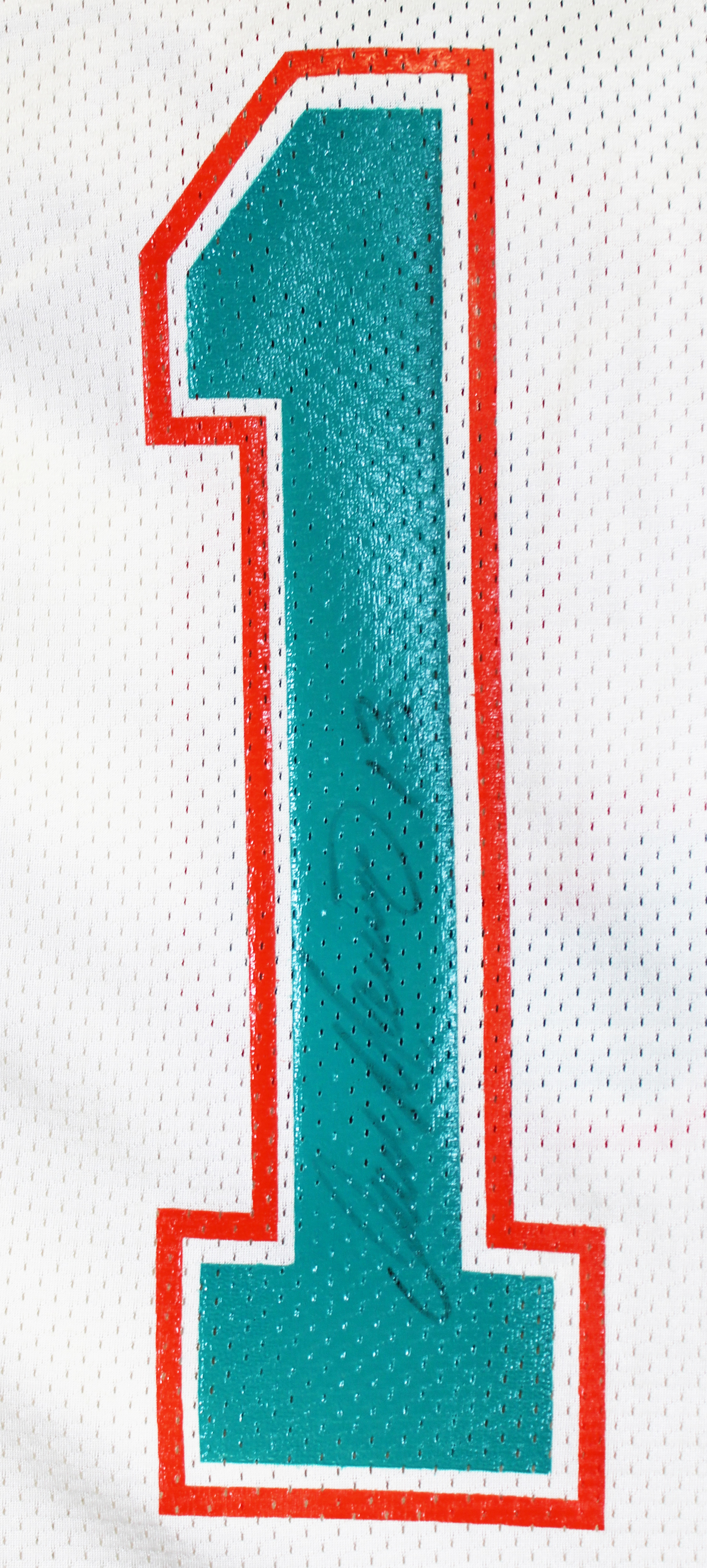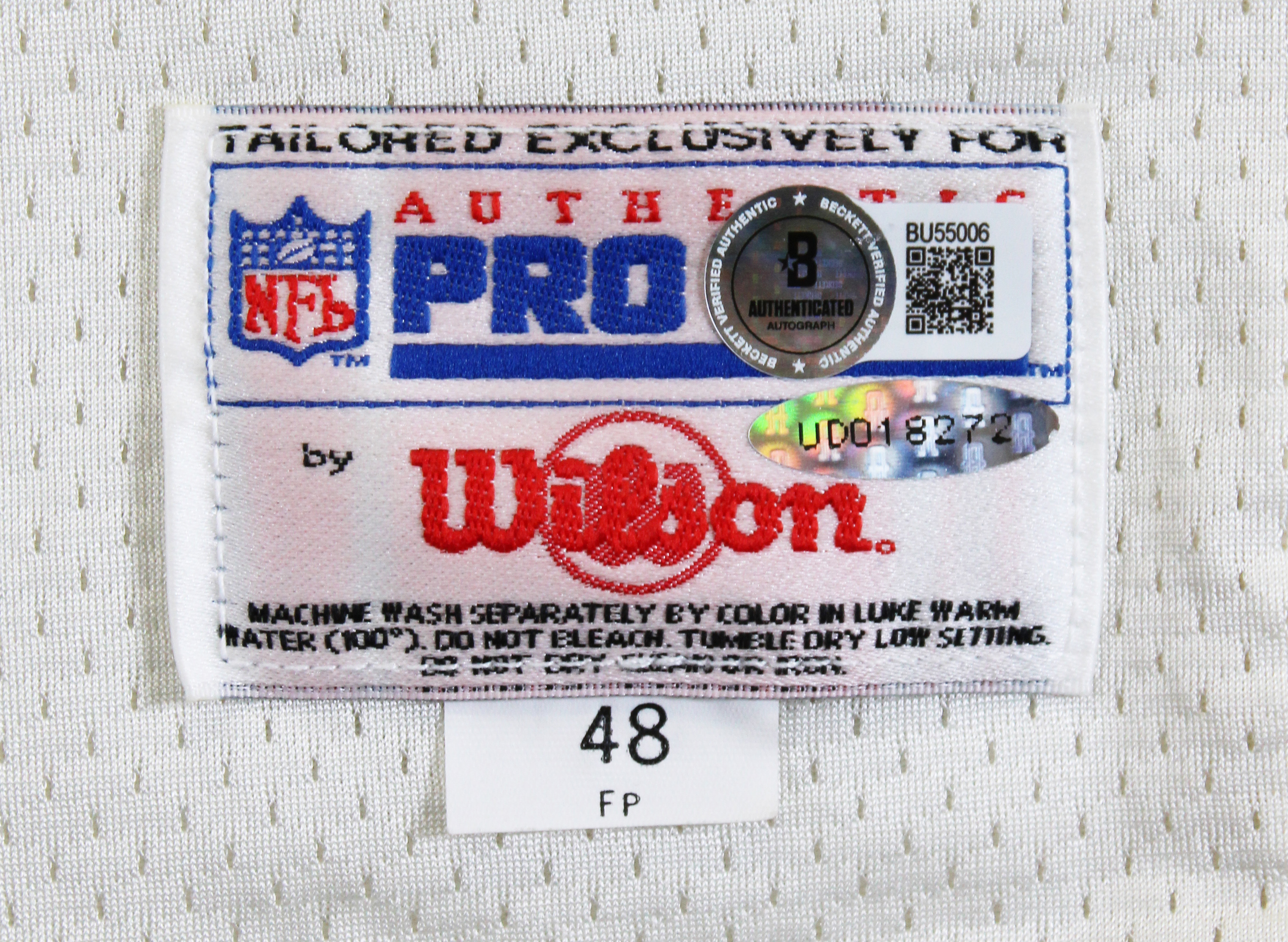 This Autographed White Wilson Proline Size 48 Jersey has been Personally Signed by Dan Marino of the Miami Dolphins. This item is 100% Authentic to include a hologram by Beckett Authentication Services. This item will come with an affixed Beckett Authentication Services (BAS) authentication sticker, which includes a scannable QR code to verify authenticity. Please note that Beckett no longer provides serial-numbered COA cards, and the attached BAS sticker will serve as the complete authentication for this item. The authenticity can be verified on Beckett Authentication Services website. This jersey was also previously authenticated by Upper Deck, but it will not come with its matching Upper Deck COA card.