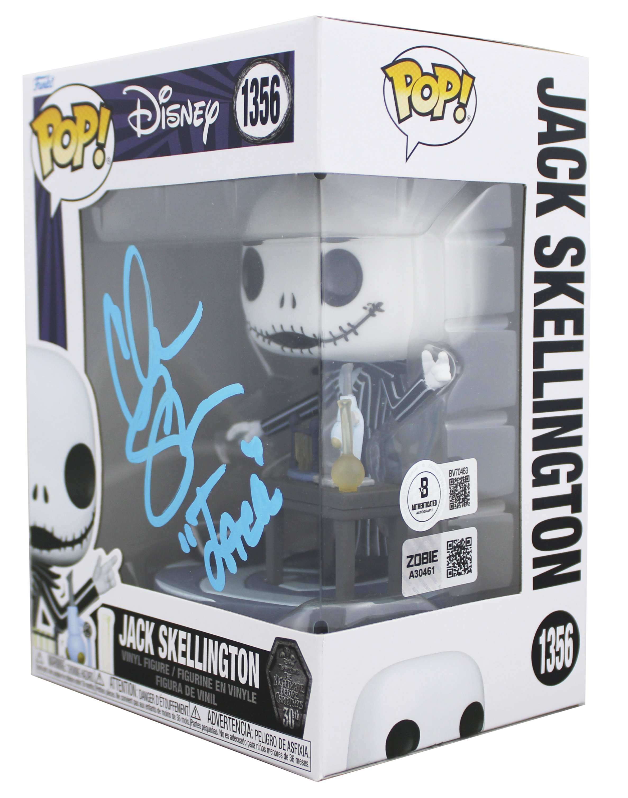 This Autographed Jack Skellington #1356 Funko Pop Vinyl Figure with the inscription of "Jack" has been Personally Signed by Chris Sarandon of The Nightmare Before Christmas. This item is 100% Authentic to include a hologram by Beckett Authentication Services. This item will come with an affixed Beckett Authentication Services (BAS) authentication sticker, which includes a scannable QR code to verify authenticity. Please note that Beckett no longer provides serial-numbered COA cards, and the attached BAS sticker will serve as the complete authentication for this item. The authenticity can be verified on Beckett Authentication Services website. This will be shipped in a Pop Protector, each will have some handling wear from shipment to the signing and back. This Funko is in good condition, but it would not be considered mint. Please refer to pictures for item's condition prior to purchase.