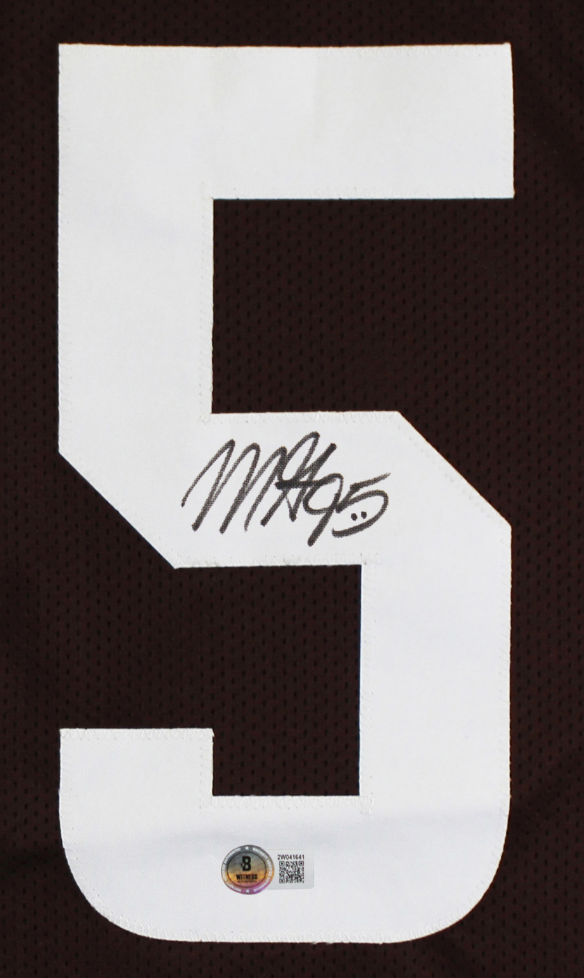 This Autographed Brown Pro Style Framed Jersey has been Personally Signed by Myles Garrett of the Cleveland Browns. This item is 100% Authentic to include a hologram by Beckett Authentication Services. This item will come with an affixed Beckett Authentication Services (BAS) authentication sticker, which includes a scannable QR code to verify authenticity. Please note that Beckett no longer provides serial-numbered COA cards, and the attached BAS sticker will serve as the complete authentication for this item. This is a BAS Witnessed Protection Program item which means a Beckett Authentication Service representative was present when this item was being signed. We conducted an autograph signing with Myles Garrett where multiples of the same item were signed. While the photographs are representative of this item, the size, placement and strength of the signature may vary. Each item is hand signed, therefore, each autograph is unique. This item can be verified through BAS Witnessed. This item has been professionally framed to overall dimensions of approximately 32 x 37 inches. Multiple sizes available. Reach out for availability. This jersey will be framed to order, it will take 3-4 days from purchase date for it to ship.