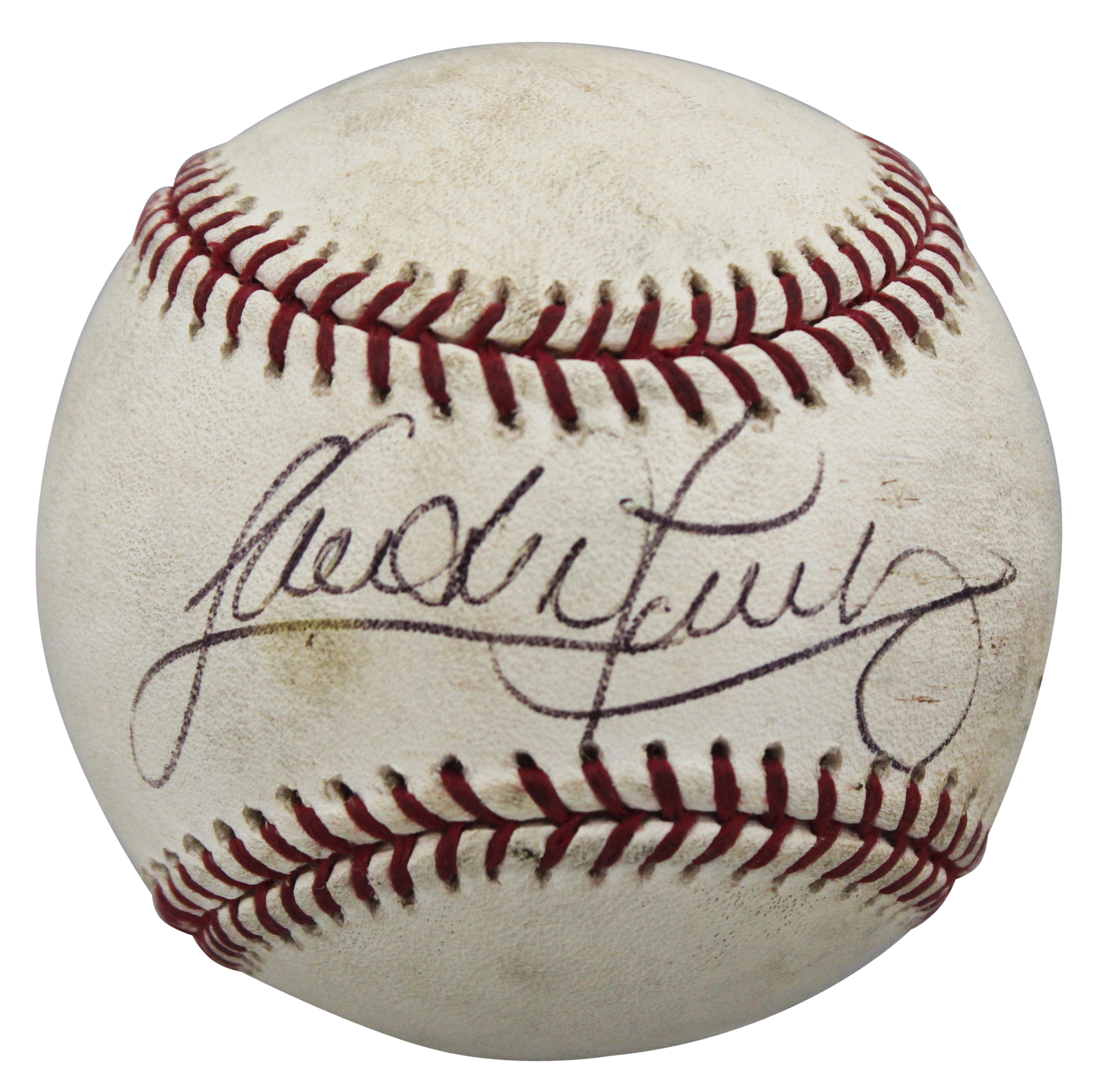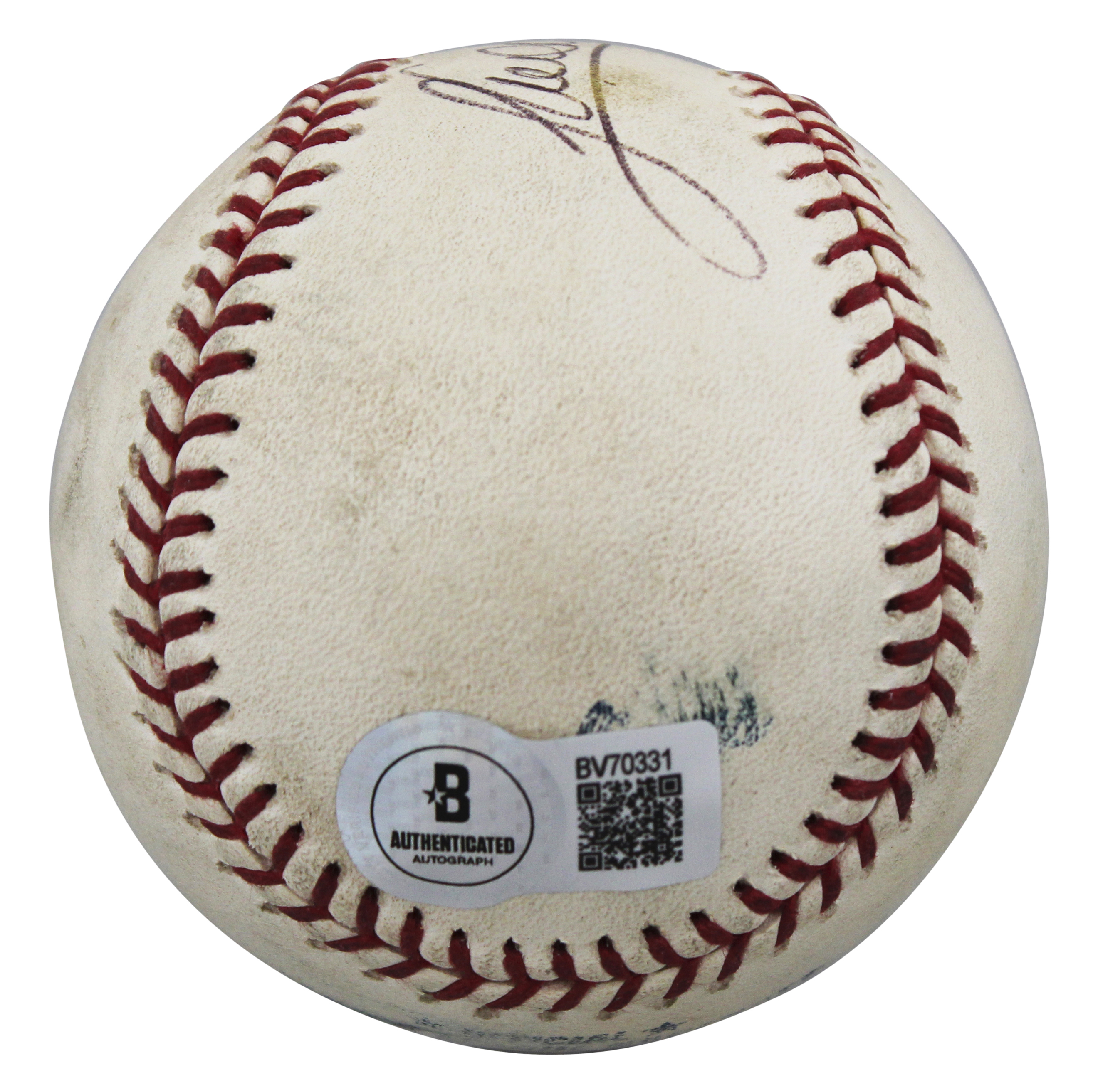 This Autographed Game Used Allen Selig Baseball has been Personally Signed by Sandy Alomar Jr. of the Cleveland Guardians. This item is 100% Authentic to include a hologram by Beckett Authentication Services. This item will come with an affixed Beckett Authentication Services (BAS) authentication sticker, which includes a scannable QR code to verify authenticity. Please note that Beckett no longer provides serial-numbered COA cards, and the attached BAS sticker will serve as the complete authentication for this item. The authenticity can be verified on Beckett Authentication Services website. This baseball's game use is not authenticated, but it is consistent with known exemplars from this era of play.