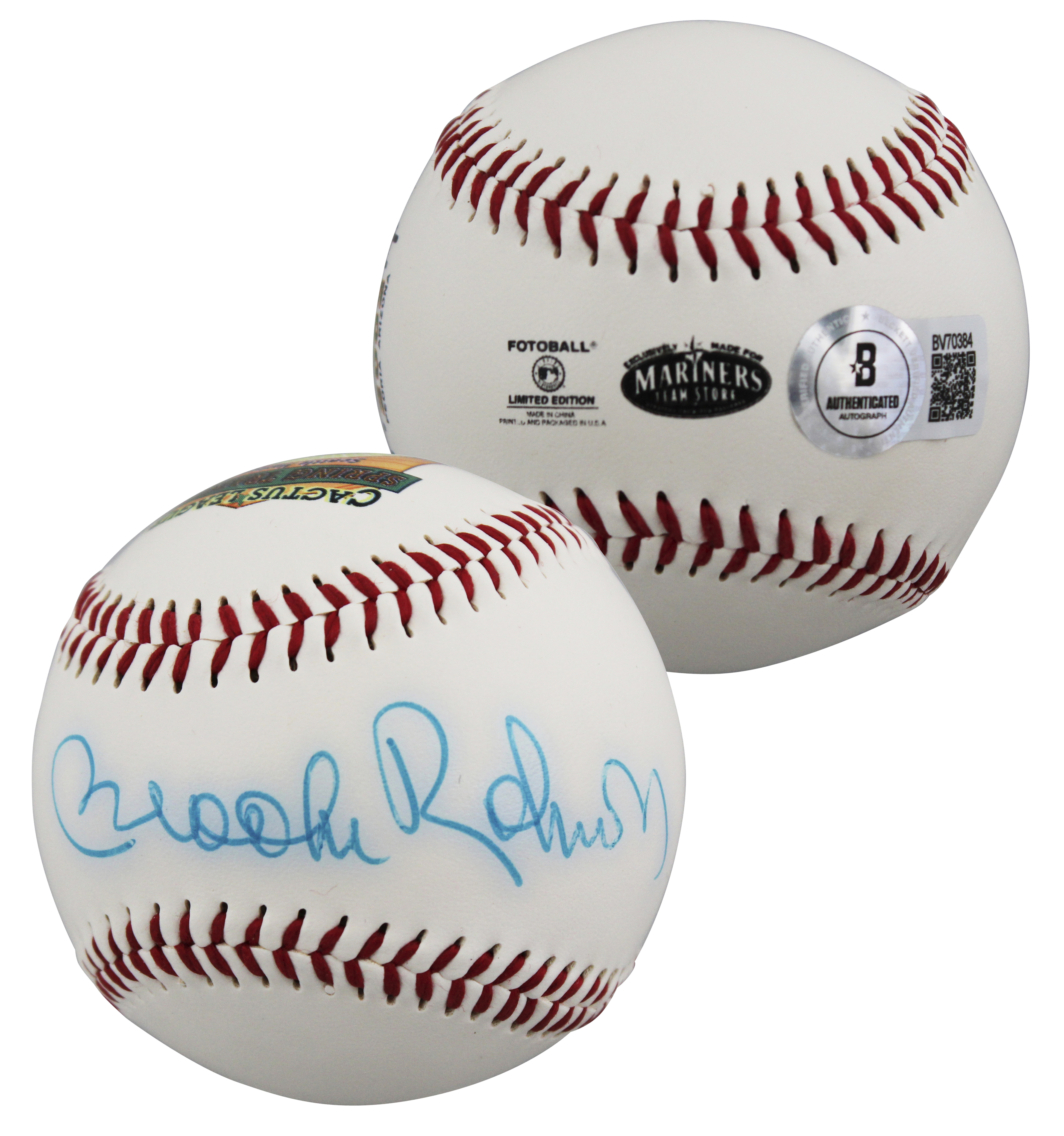 This Autographed 2002 Cactus League Spring Training Fotoball Baseball has been Personally Signed by Brooks Robinson of the Baltimore Orioles. This item is 100% Authentic to include a hologram by Beckett Authentication Services. This item will come with an affixed Beckett Authentication Services (BAS) authentication sticker, which includes a scannable QR code to verify authenticity. Please note that Beckett no longer provides serial-numbered COA cards, and the attached BAS sticker will serve as the complete authentication for this item. The authenticity can be verified on Beckett Authentication Services website.