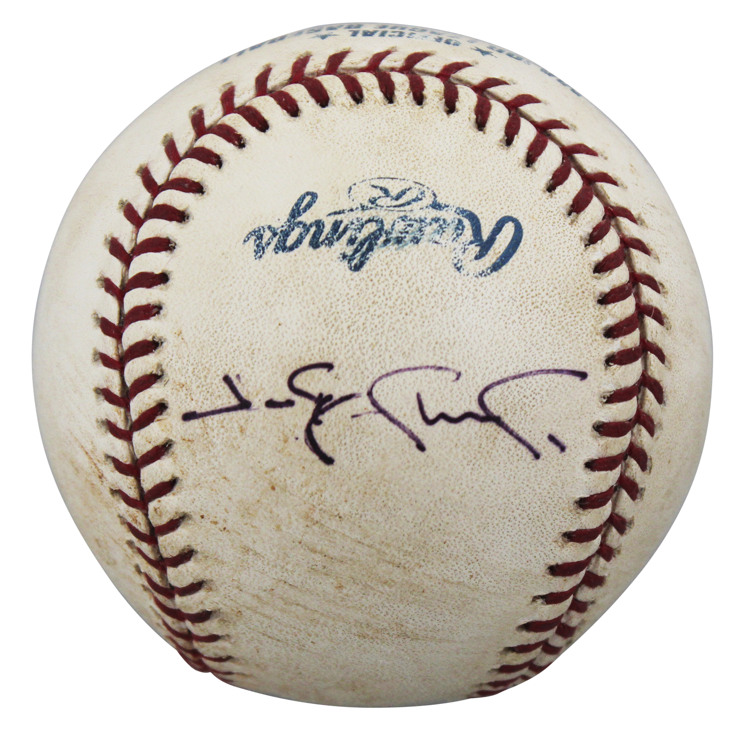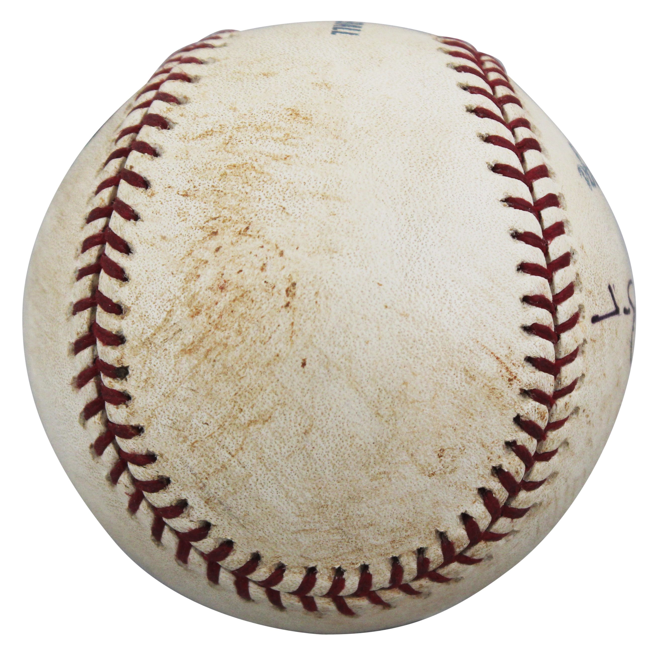 This Autographed Game Used Allen Selig Baseball has been Personally Signed by Jim Edmonds of the St. Louis Cardinals. This item is 100% Authentic to include a hologram by Beckett Authentication Services. This item will come with an affixed Beckett Authentication Services (BAS) authentication sticker, which includes a scannable QR code to verify authenticity. Please note that Beckett no longer provides serial-numbered COA cards, and the attached BAS sticker will serve as the complete authentication for this item. The authenticity can be verified on Beckett Authentication Services website. This baseball's game use is not authenticated, but it is consistent with known exemplars from this era of play.