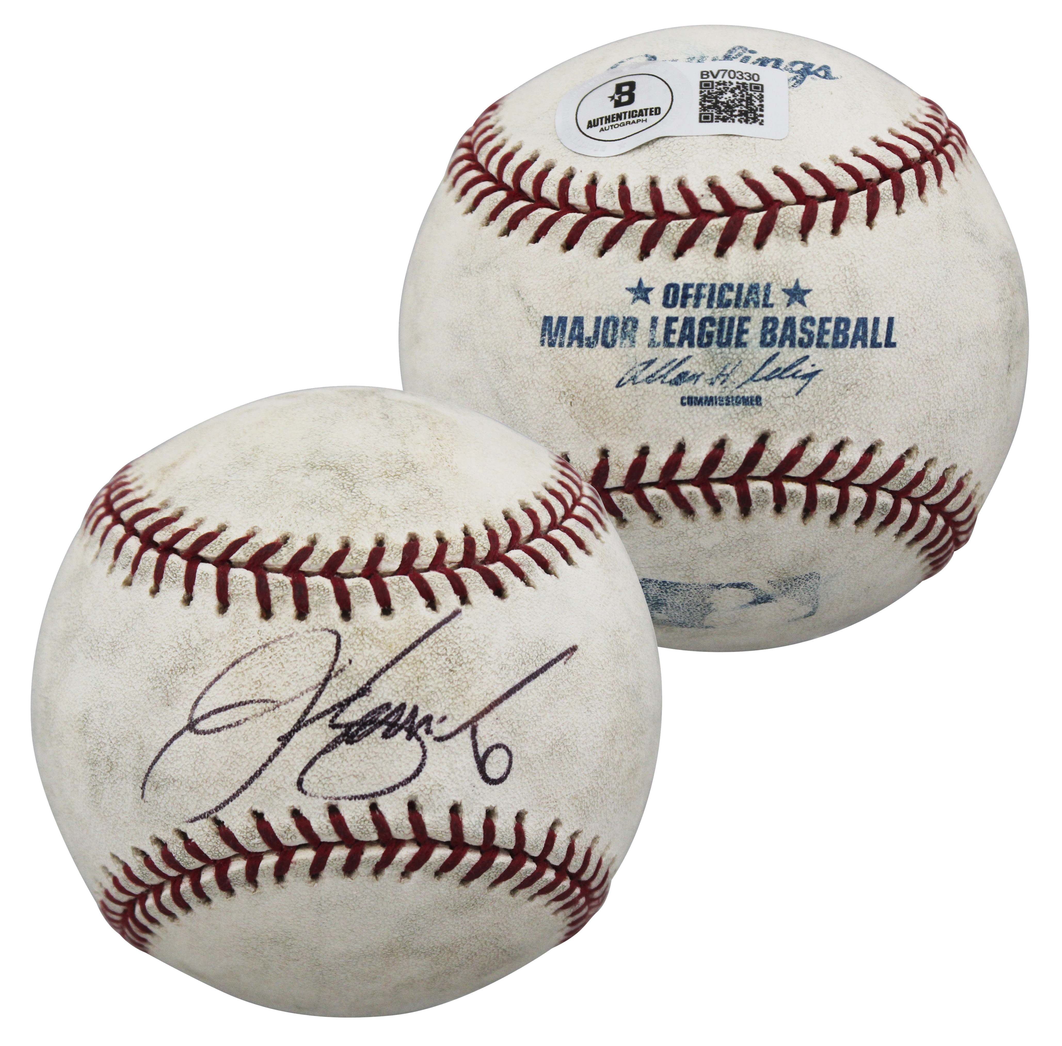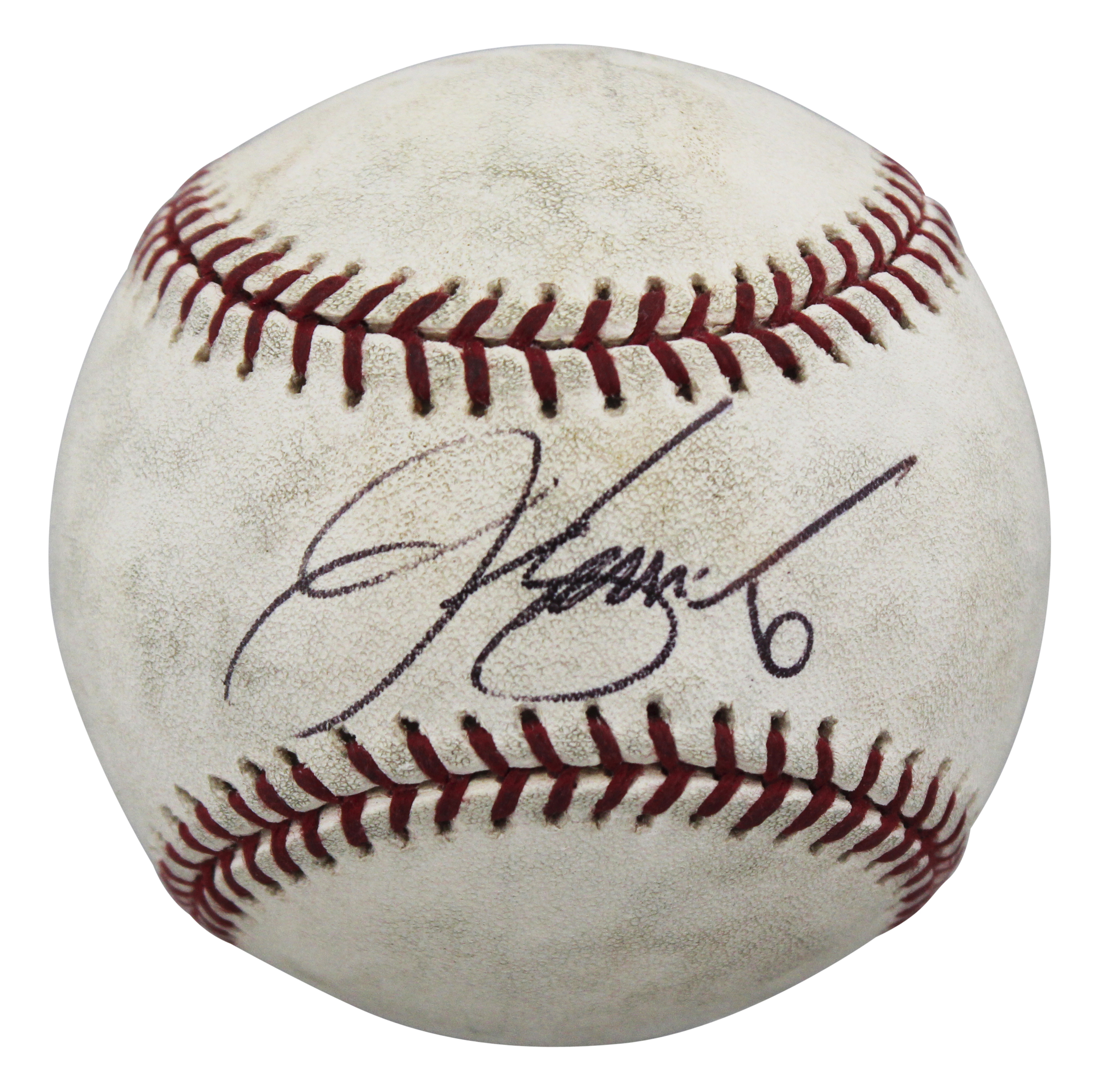 This Autographed Game Used Allen Selig Baseball has been Personally Signed by J.T. Snow of the San Francisco Giants. This item is 100% Authentic to include a hologram by Beckett Authentication Services. This item will come with an affixed Beckett Authentication Services (BAS) authentication sticker, which includes a scannable QR code to verify authenticity. Please note that Beckett no longer provides serial-numbered COA cards, and the attached BAS sticker will serve as the complete authentication for this item. The authenticity can be verified on Beckett Authentication Services website. This baseball's game use is not authenticated, but it is consistent with known exemplars from this era of play.